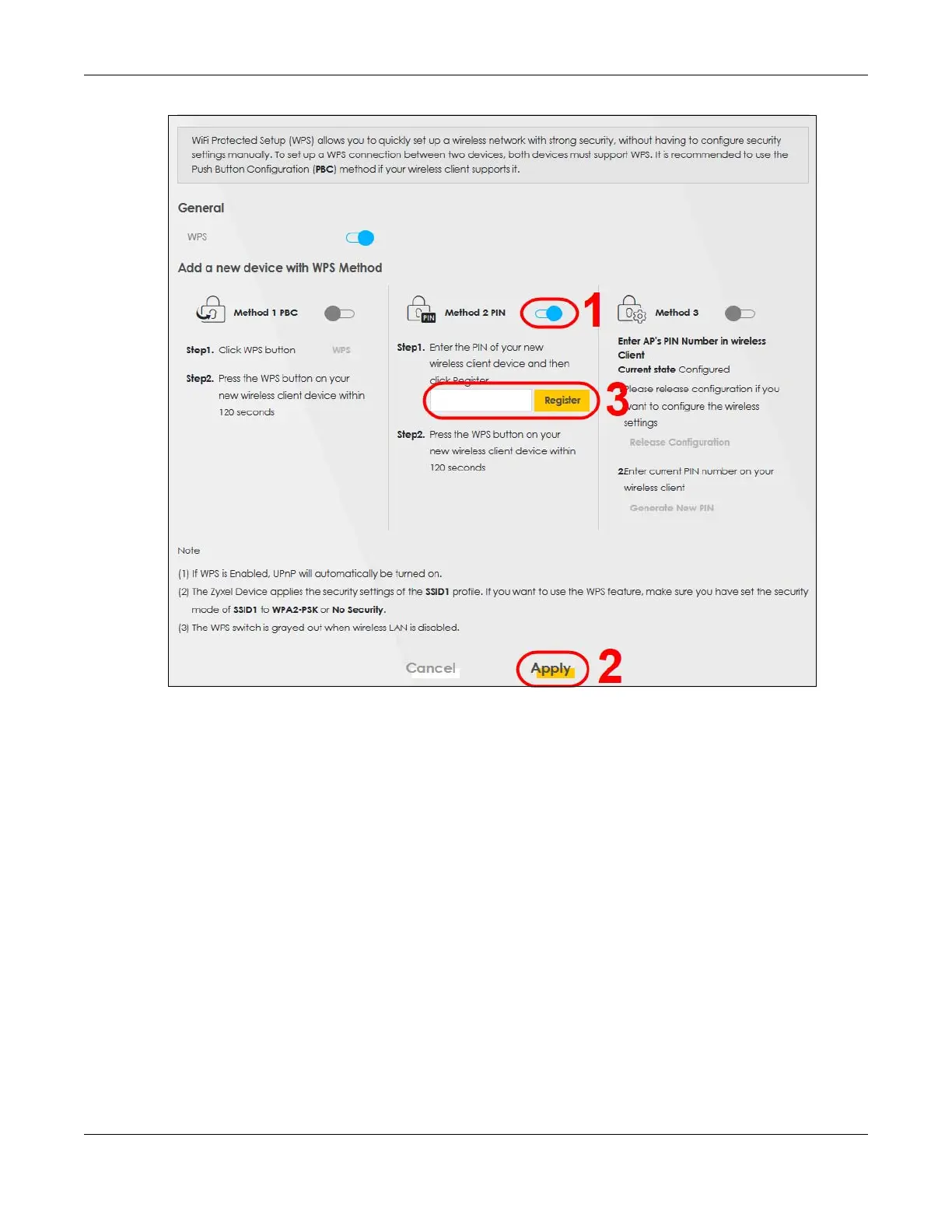 The Zyxel Device authenticates the WiFi device using the PIN, and then sends the WiFi network settings to