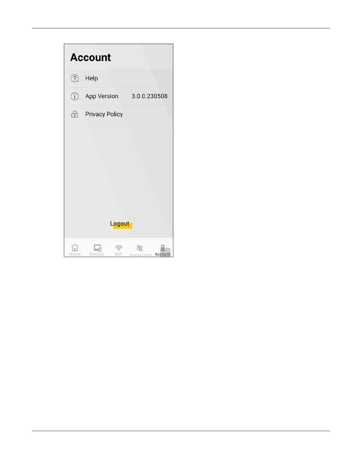 Tap the Account icon in the navigation panel. Tap Logout, then tap YES.