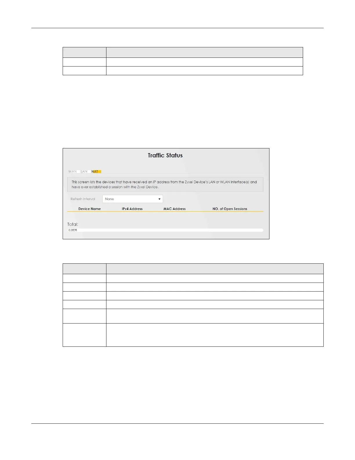 Click System Monitor > Traffic Status > NAT to open the following screen. This screen lists the devices that