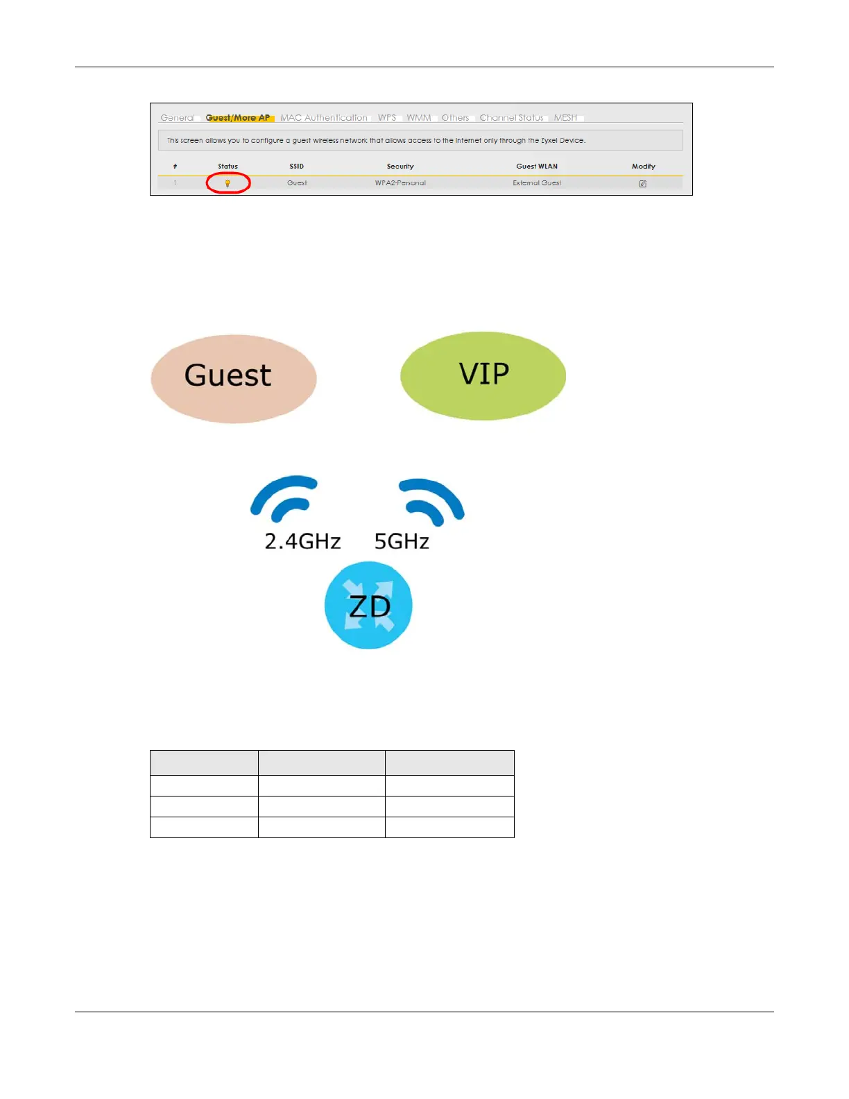 1 Go to the Wireless > General screen and set Band to 2.4GHz to configure 2.4G Guest WiFi settings for