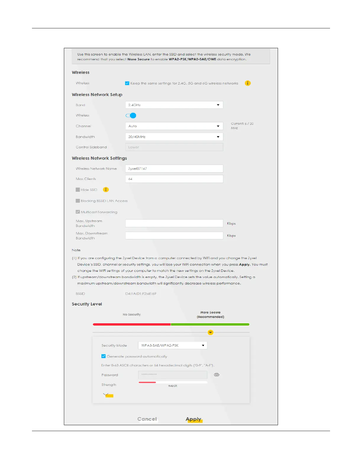 Figure 107 Network Setting > Wireless > General