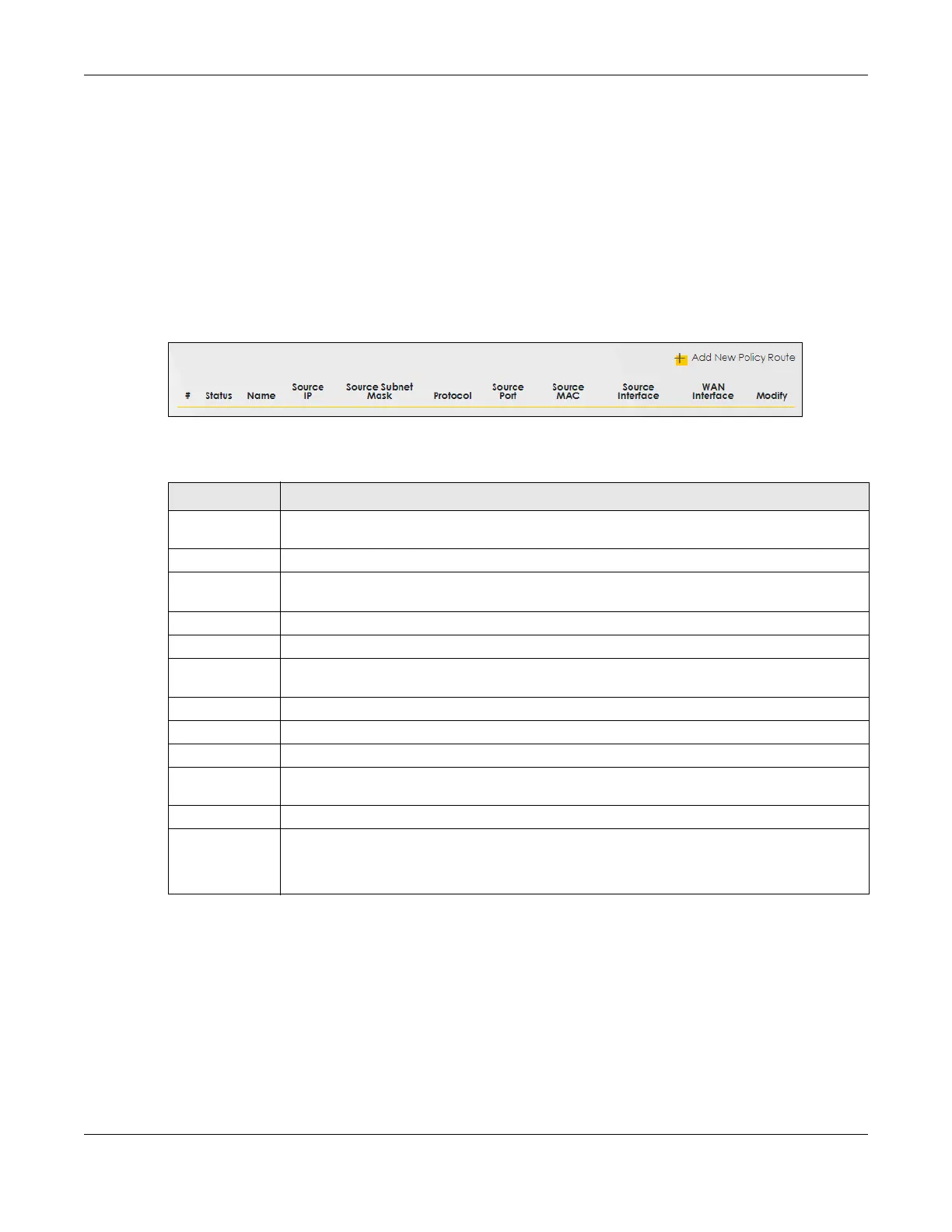 Table 84 Network Setting > Routing > Policy Route