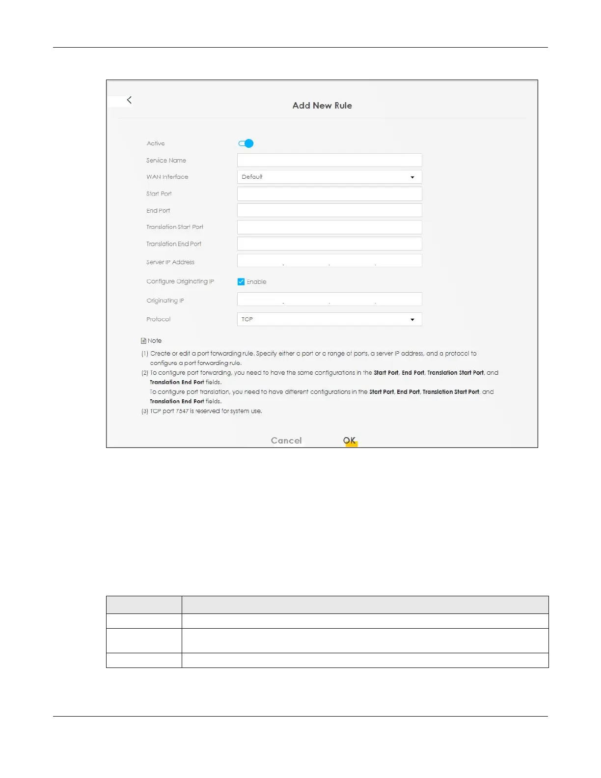 End Port, Translation Start Port, and Translation End Port fields.