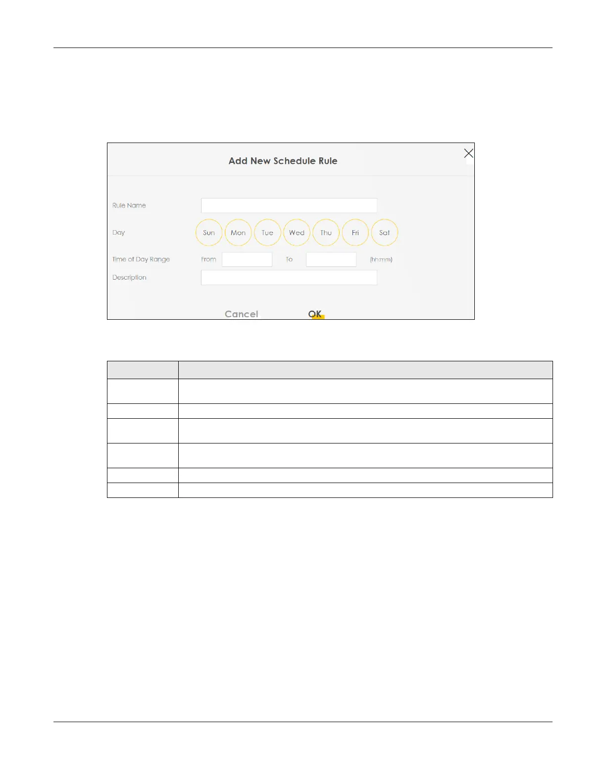 Day Select check boxes for the days that you want the Zyxel Device to perform this scheduler rule.