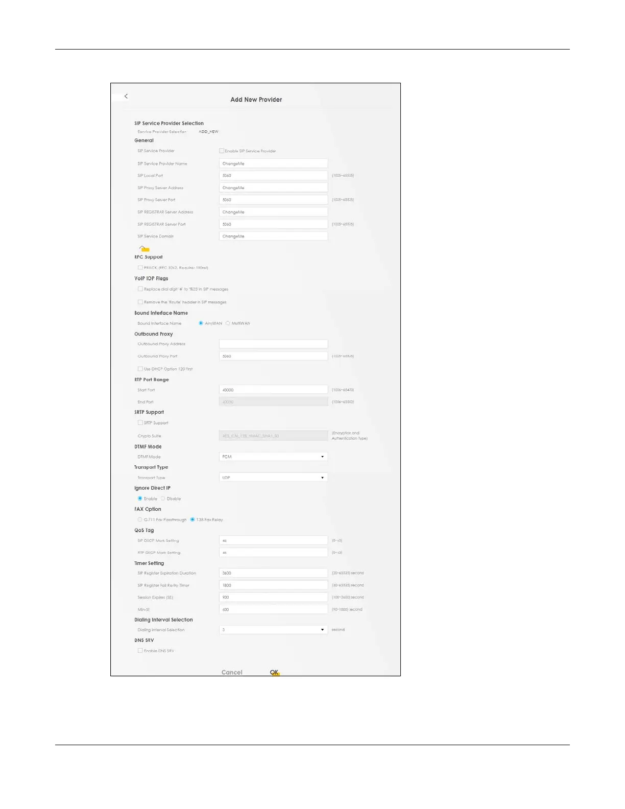 Figure 234 VoIP > SIP > SIP Service Provider: Add New Provider or Edit