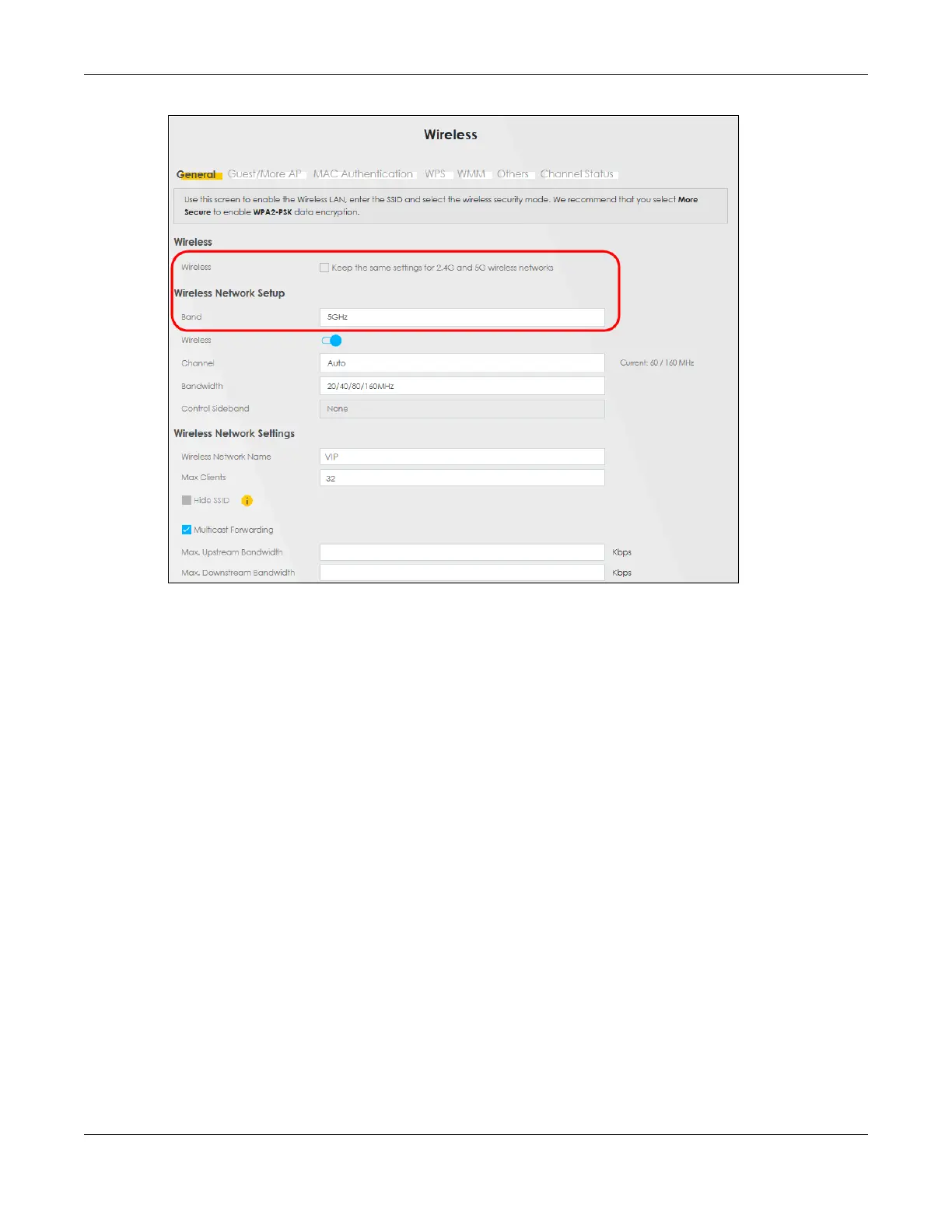 4 Go to the Wireless > Guest/More AP screen and click the Modify icon. The following screen appears.