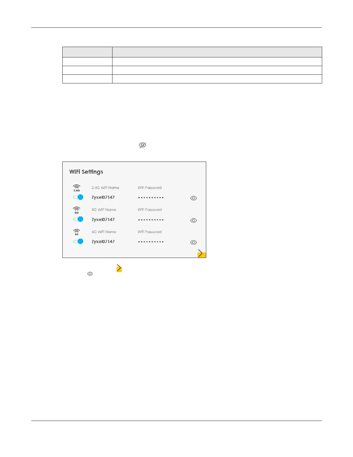 Click the Arrow icon ( ) to configure the SSIDs and/or passwords for your main WiFi networks. Click the