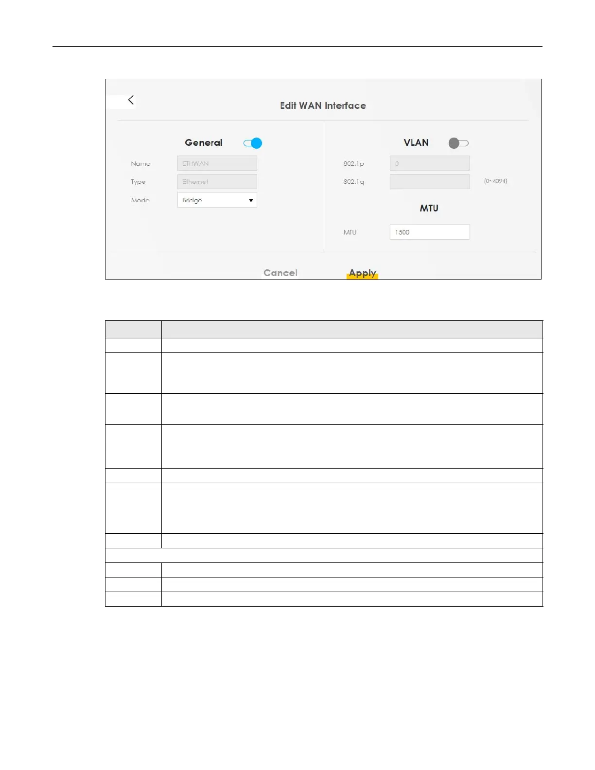 Table 49 Network Setting > Broadband > Add or Edit New WAN Interface (Bridge Mode)