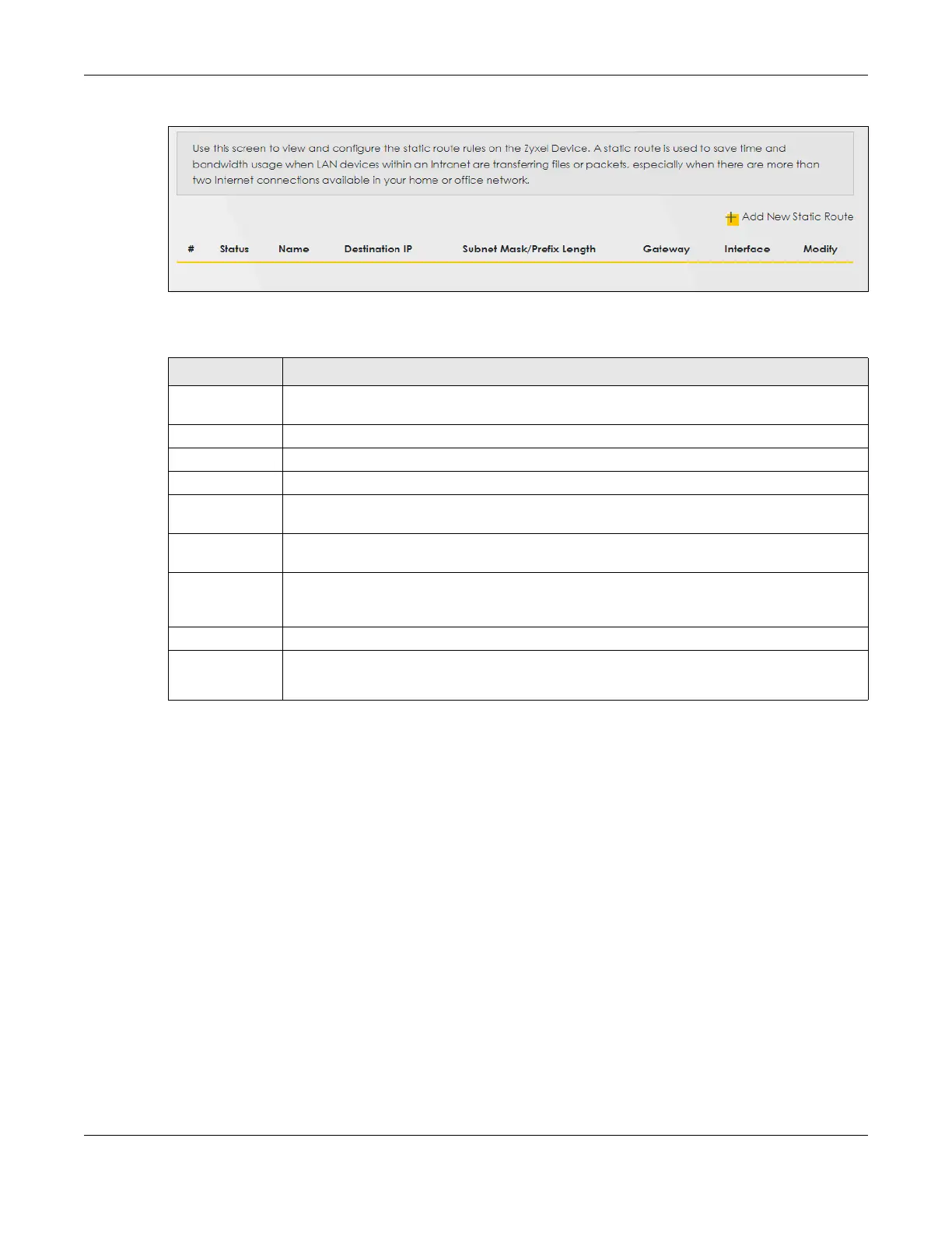 Use this screen to add or edit a static route. Click Add New Static Route in the Static Route screen, the