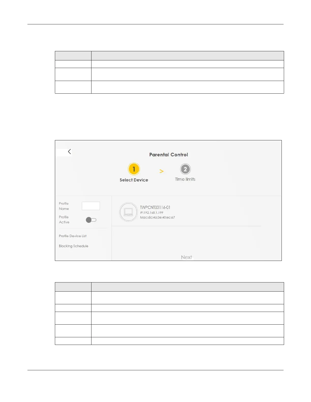 Table 134 Parental Control > Add more Profile: Select Device