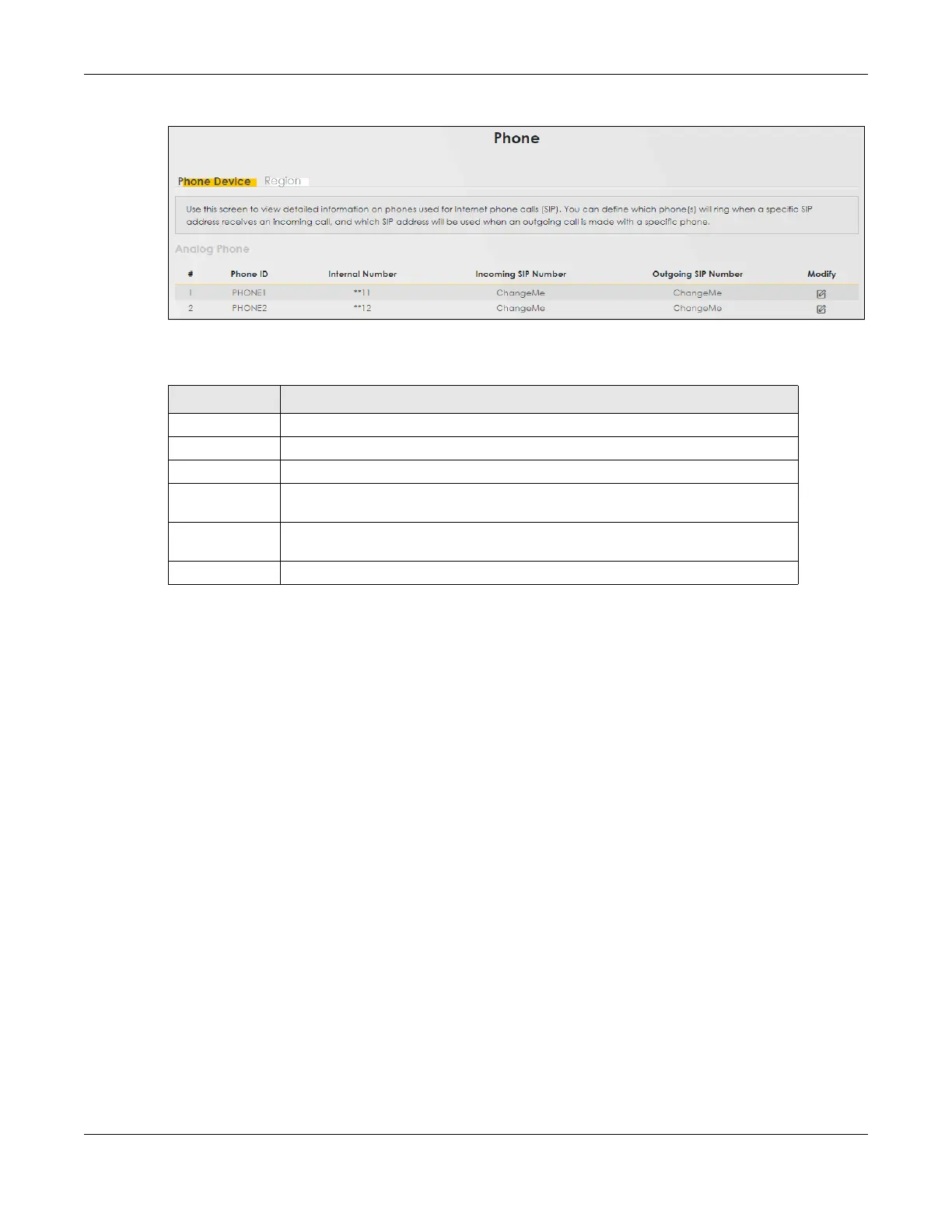 Phone ID This field displays the name of a phone port on the Zyxel Device.