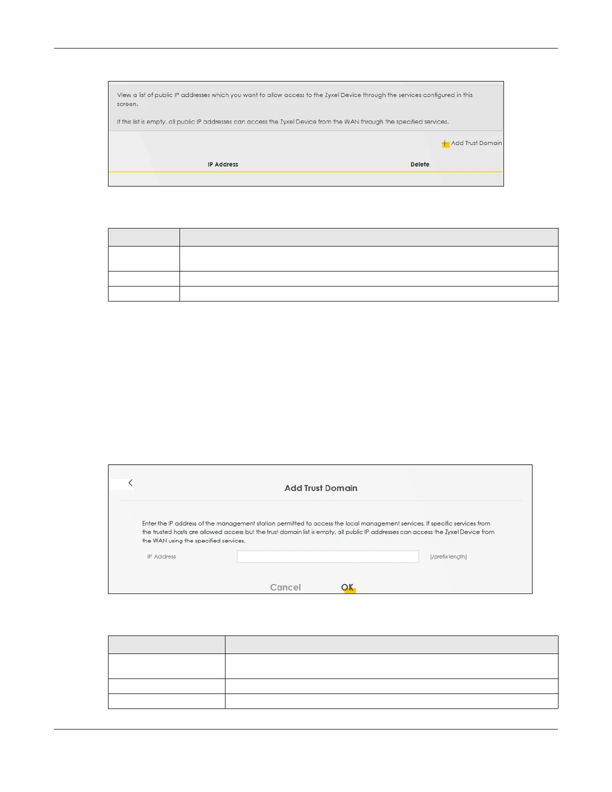 domain list is empty, all public IP addresses can access the Zyxel Device from the WAN using the
