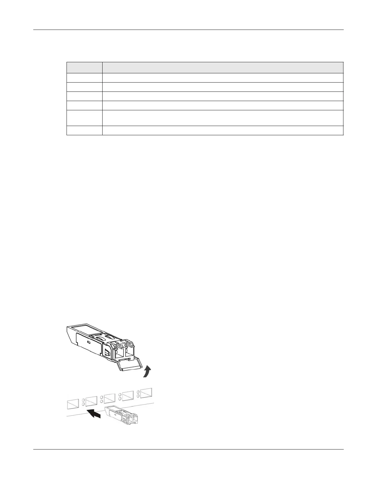 5 The Zyxel Device automatically detects the installed transceiver. Check the LEDs to verify that it is