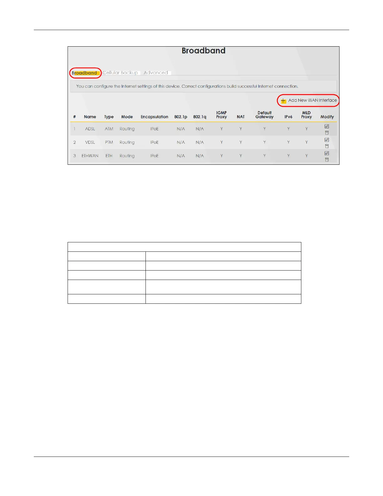 1 In this routing mode example, configure the following information for the Ethernet WAN connection.