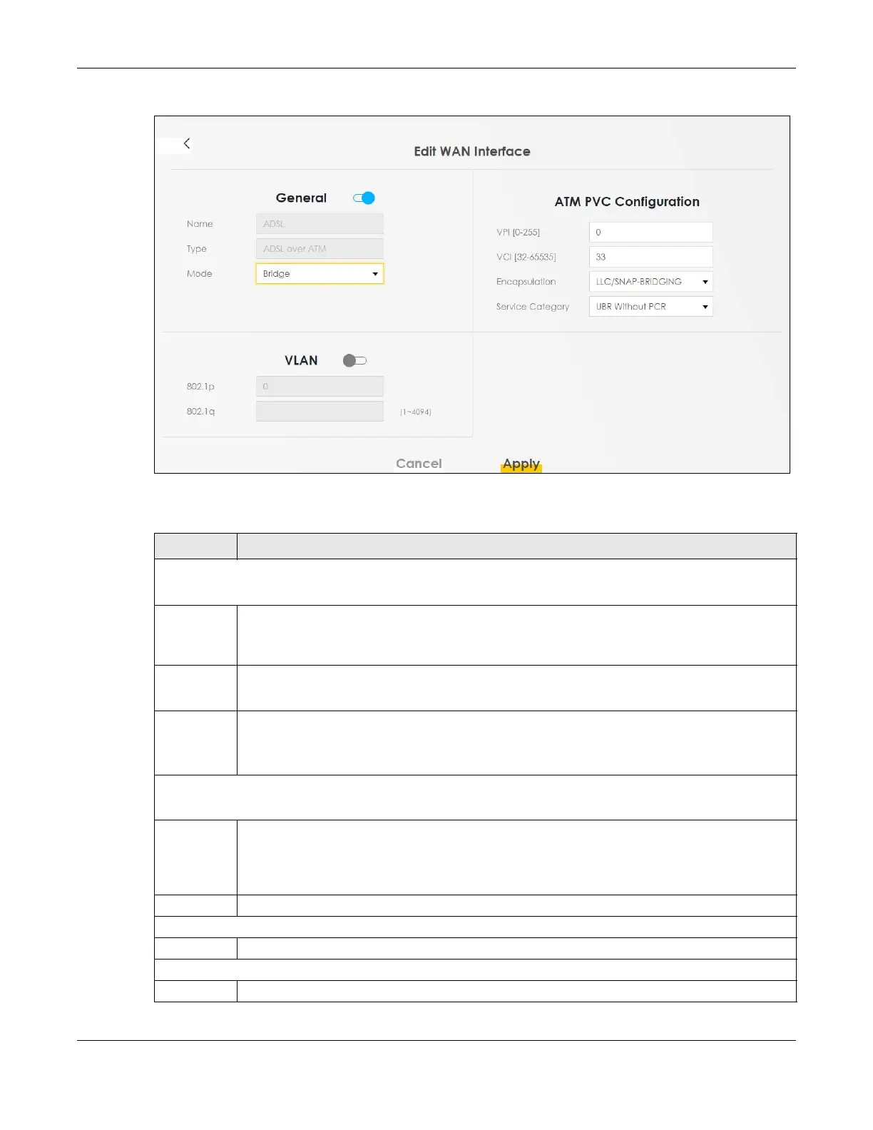 Table 46 Network Setting > Broadband > Add/Edit New WAN Interface (Bridge Mode)