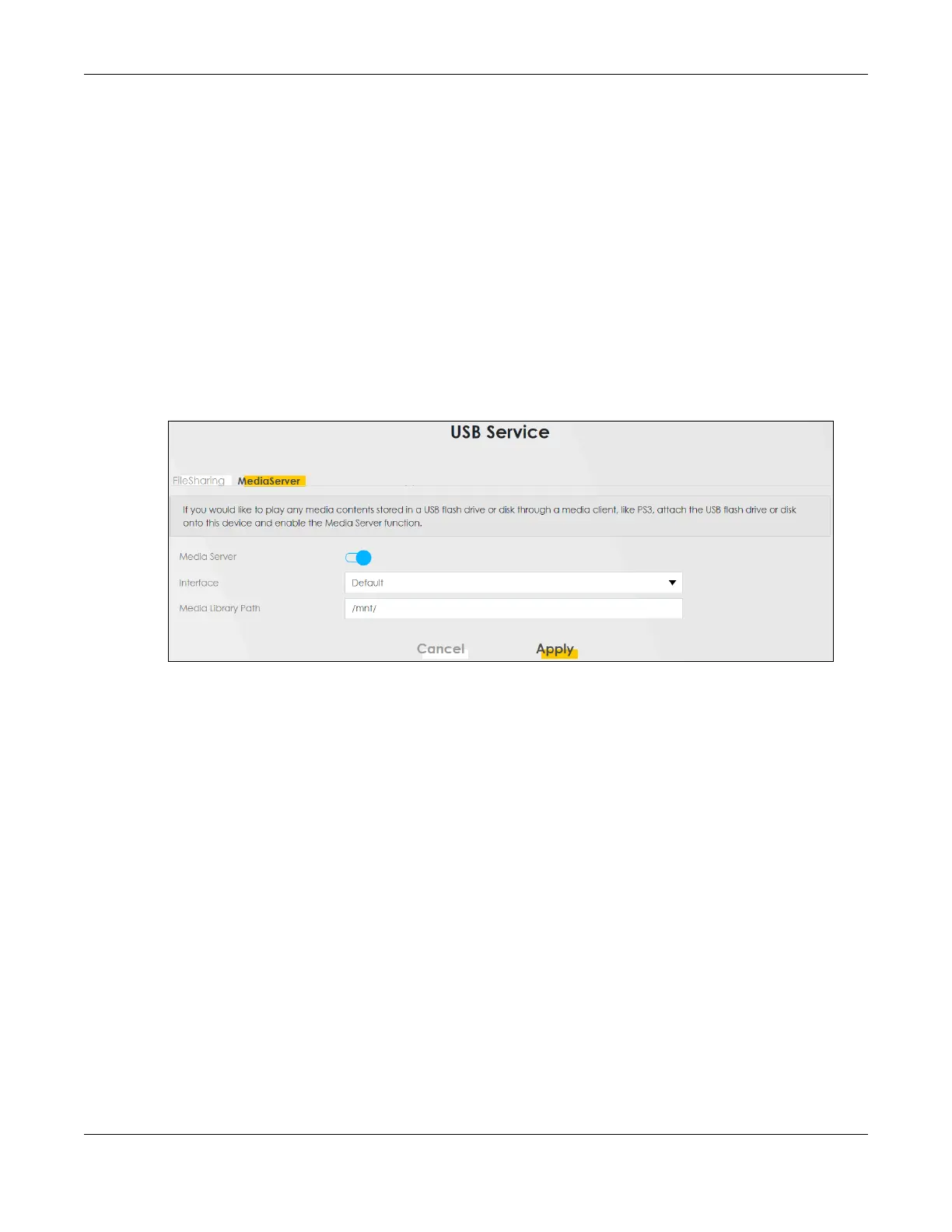 3 Enter the path clients use to access the media files on a USB storage device connected to the Zyxel