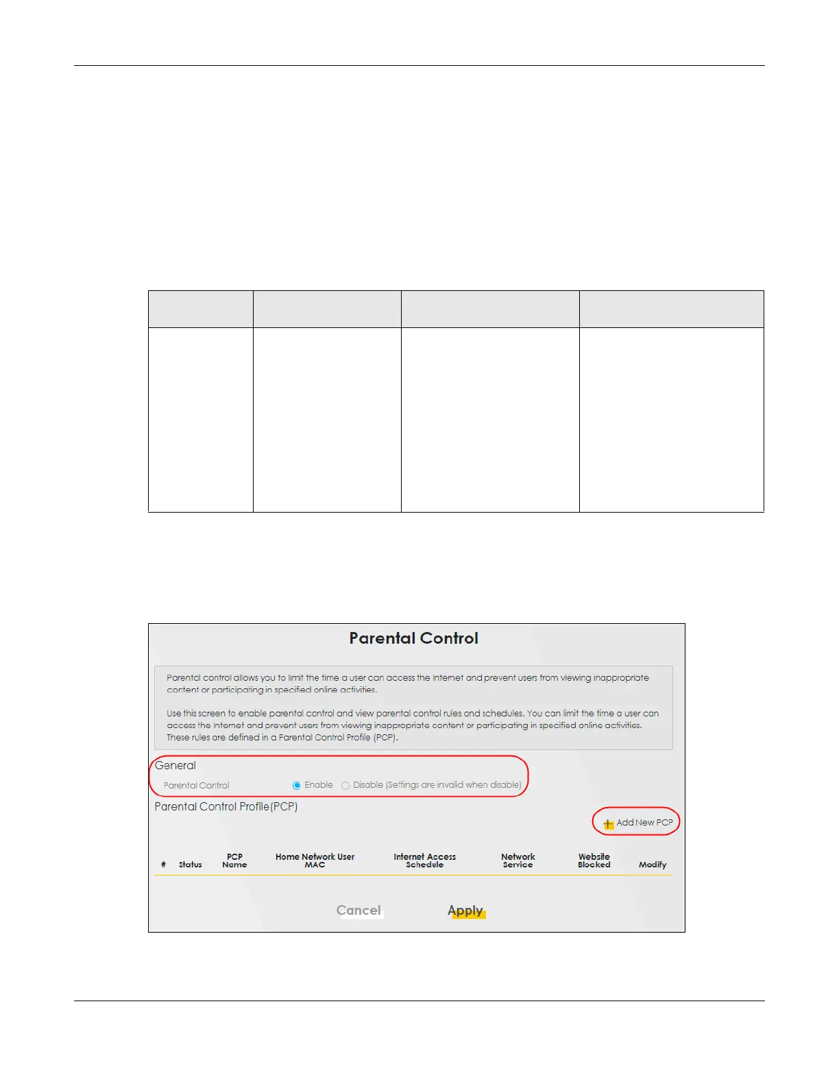 Open the Parental Control screen. Select Enable under General to enable parental control. Then click