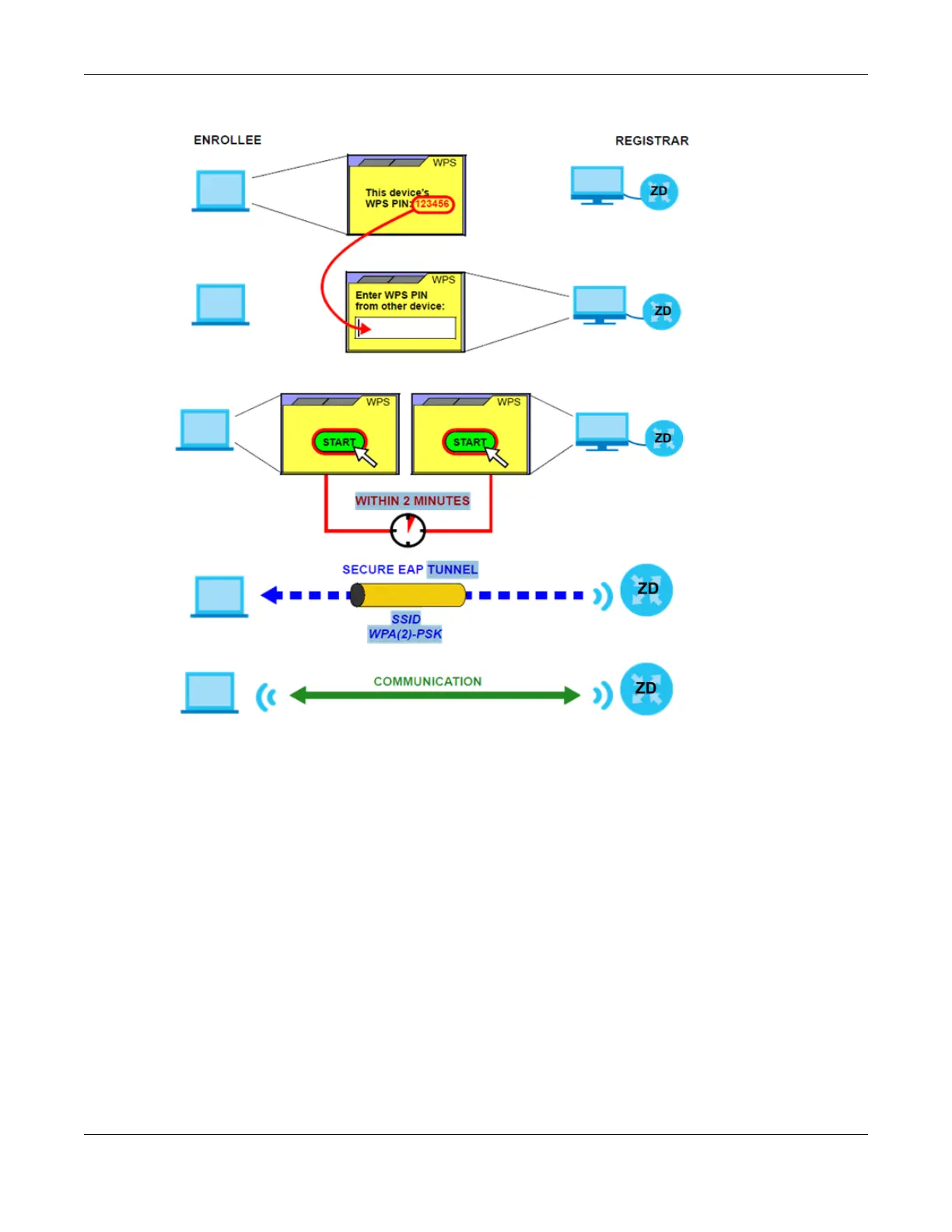 When two WPS-enabled devices connect, each device must assume a specific role. One device acts