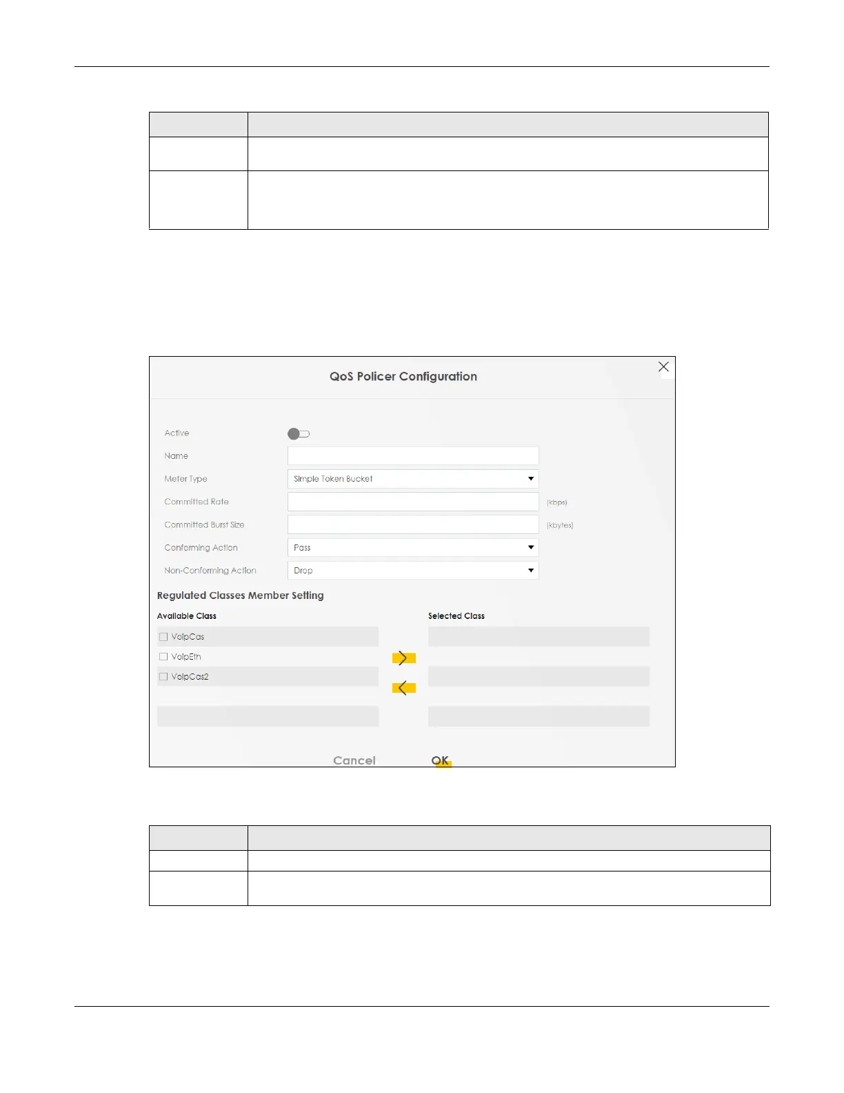 Table 82 Network Setting > QoS > Policer Setup (continued)