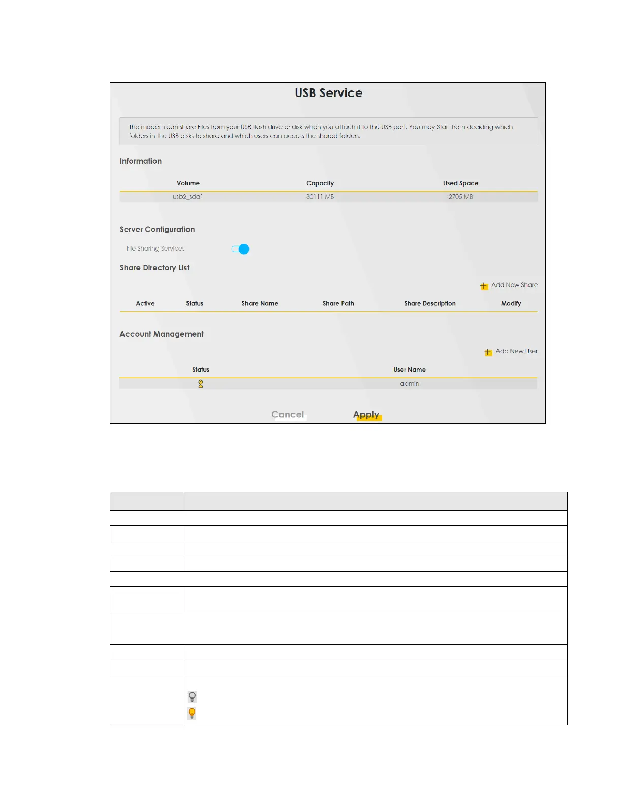 Volume This is the volume name the Zyxel Device gives to an inserted USB device.