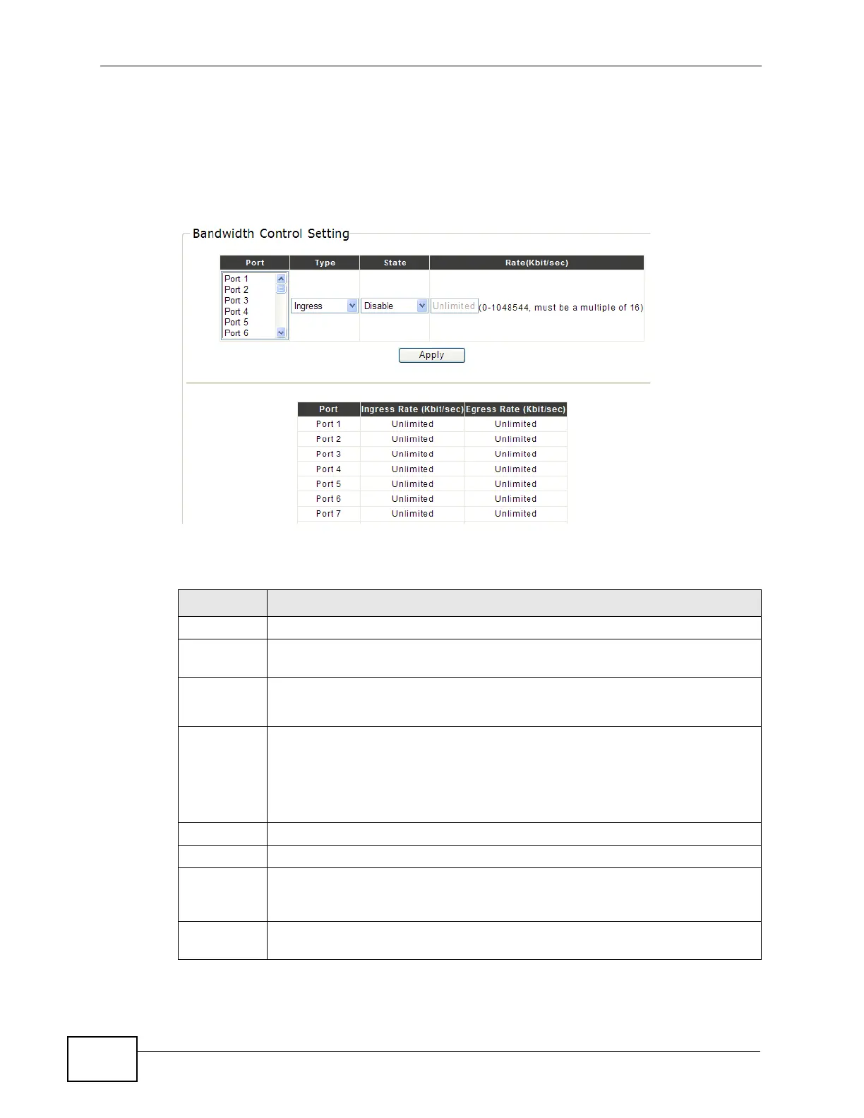 the port in kilobits per second (Kbps). The default setting is Unlimited.