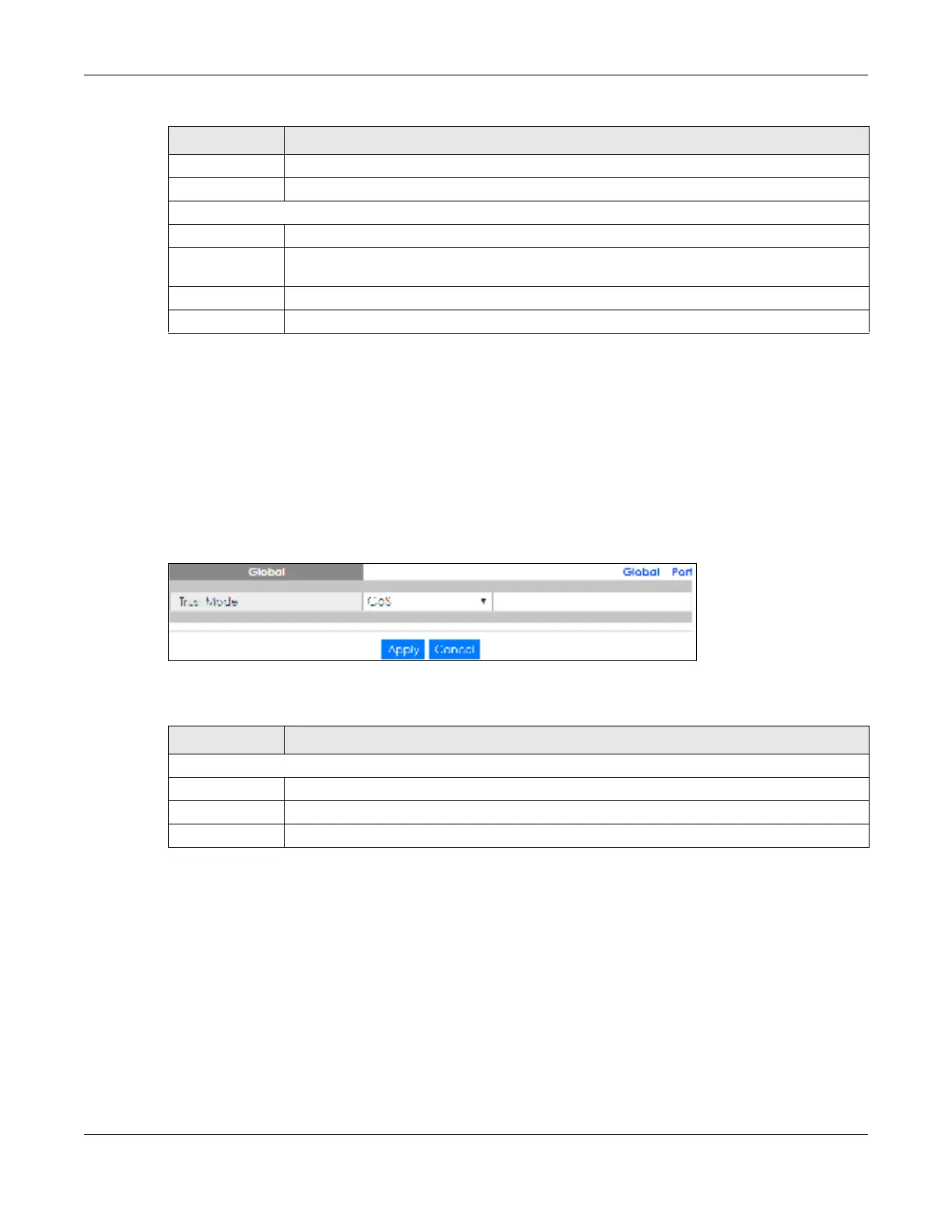 Use this screen to view the G lob a l settings. Click Co nfigura tio n > Q oS > Trust Mo de > G lo ba l to open this