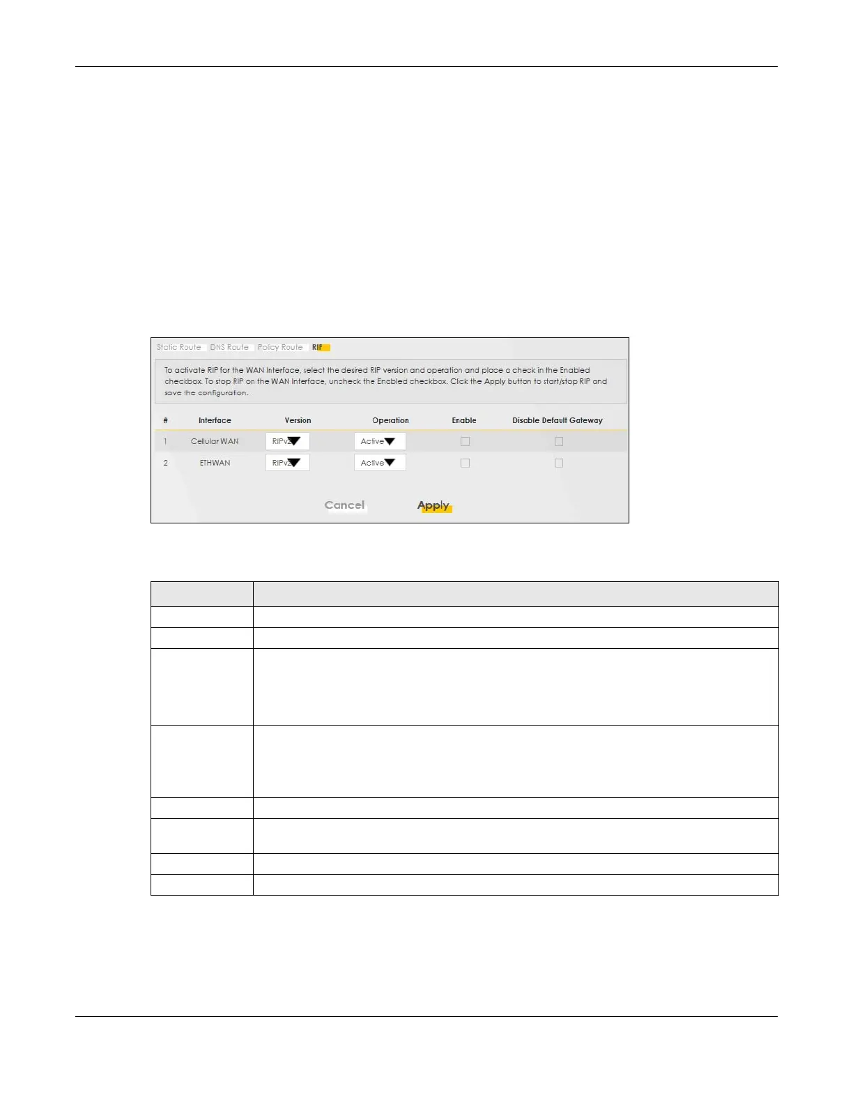 Operation Select Passive to have the Zyxel Device update the routing table based on the RIP packets