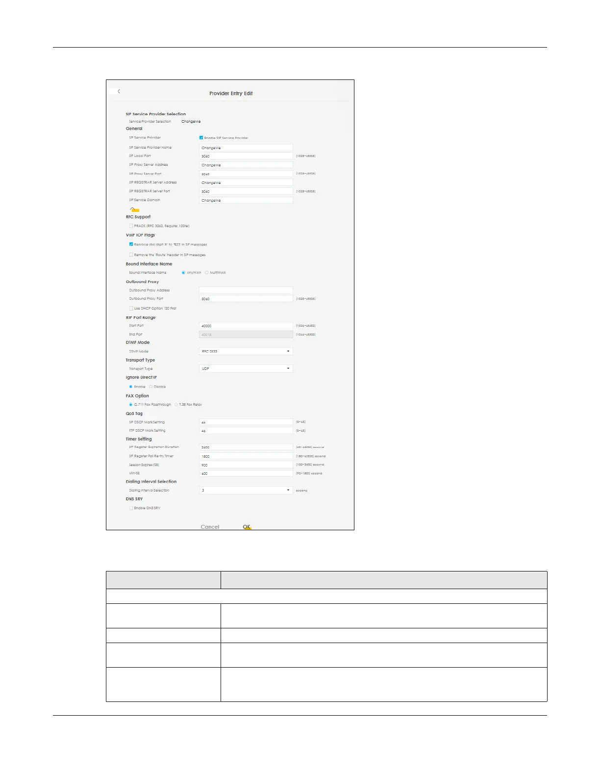 Table 86 Voice > SIP > SIP Service Provider: Edit