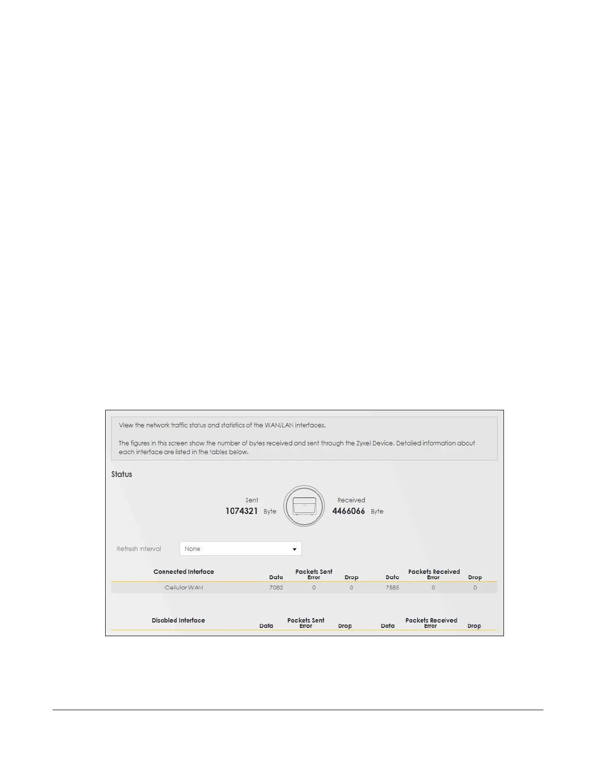 of bytes received and sent through the Zyxel Device’s WAN interface. The table below shows packet