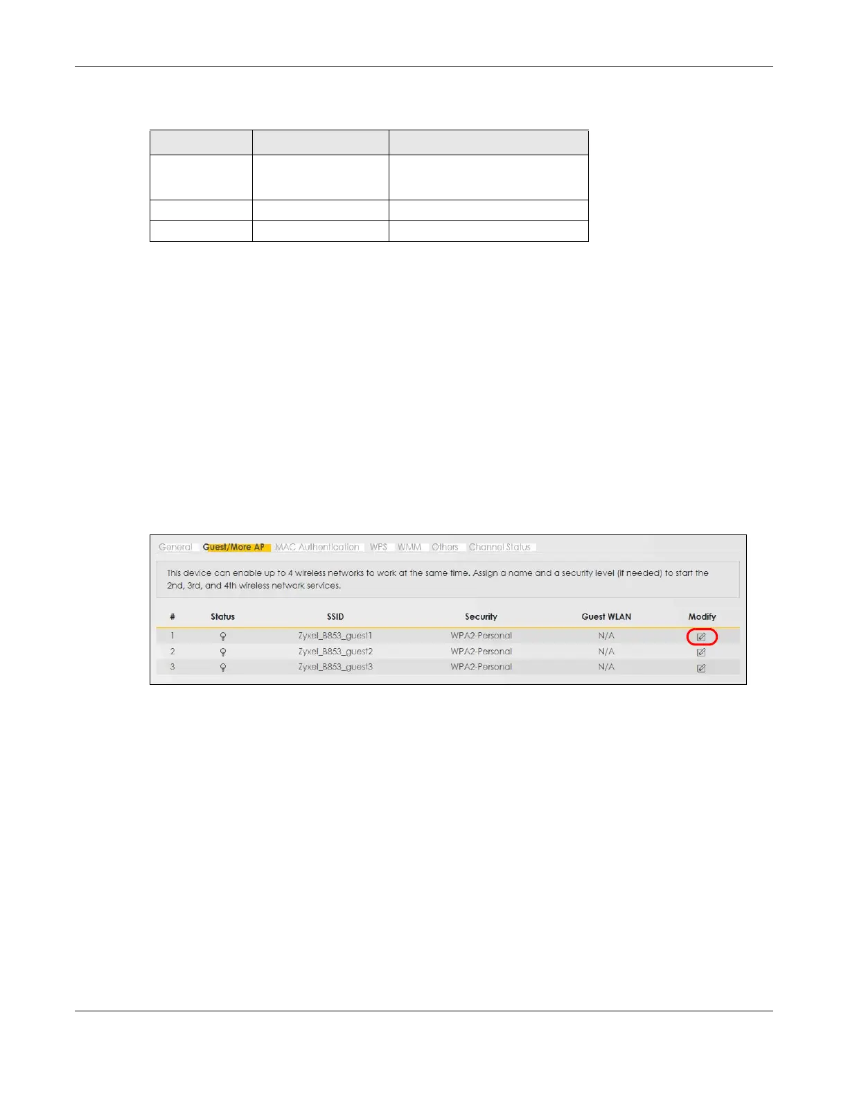 6 Go to Configuration > Network Setting > Wireless > Guest/More AP. Click the Modify/Edit icon of the first