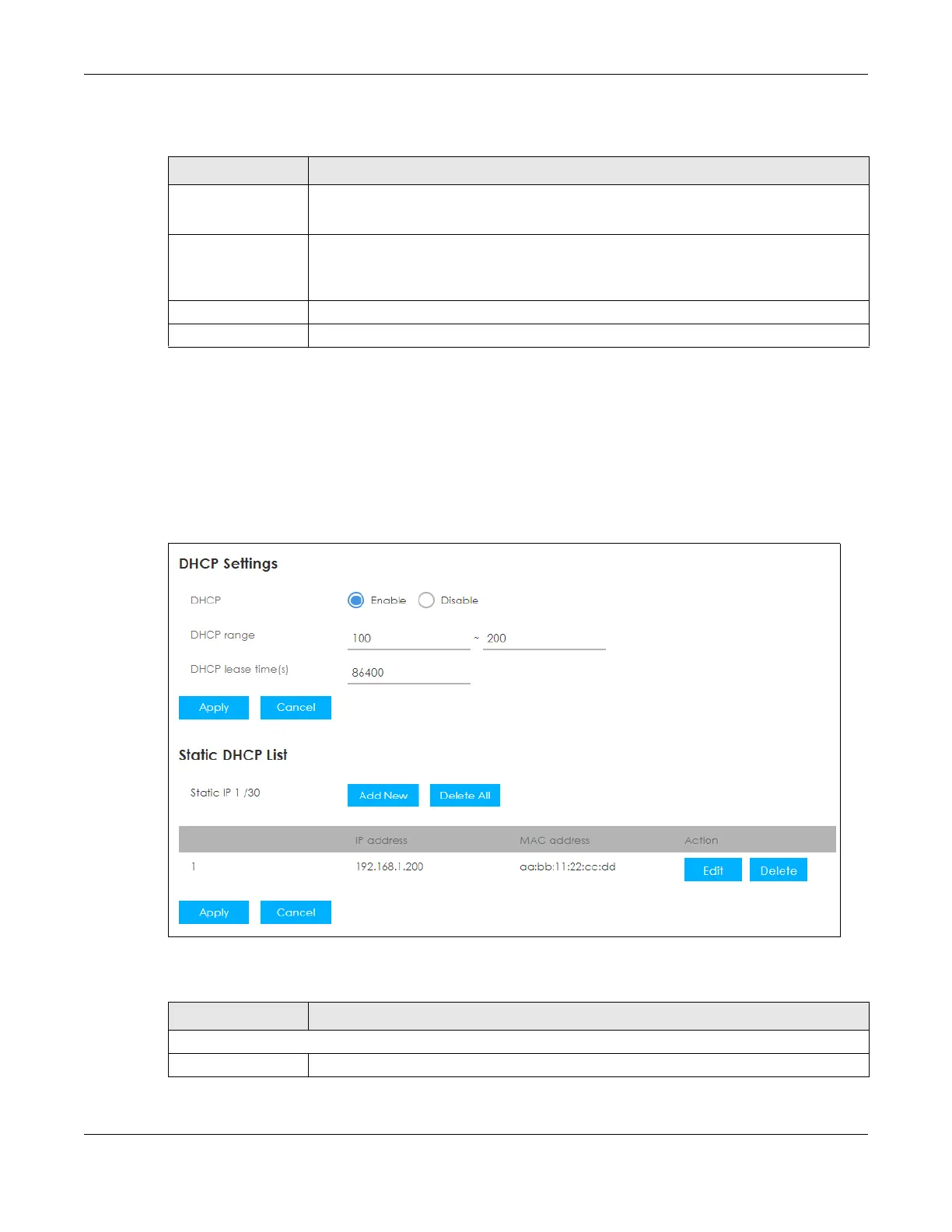 Table 19 Router > DHCP Server