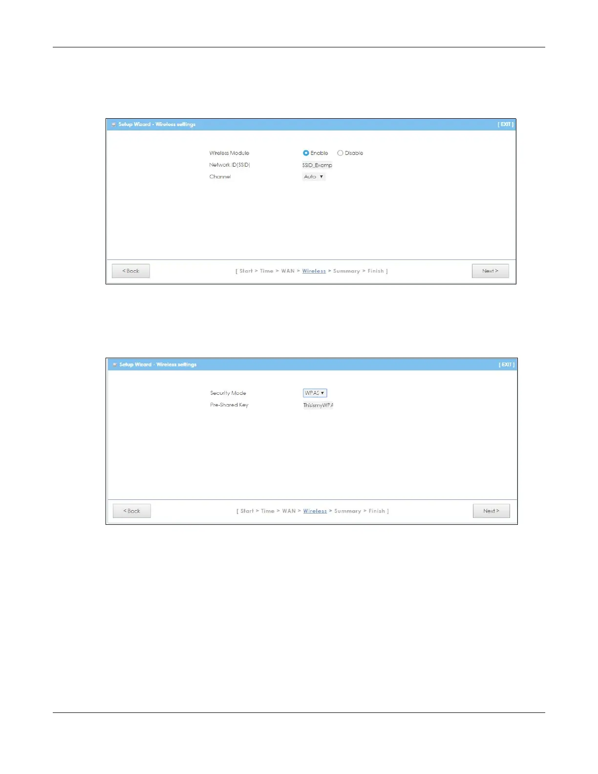 Figure 19 Wizard: Wireless Settings