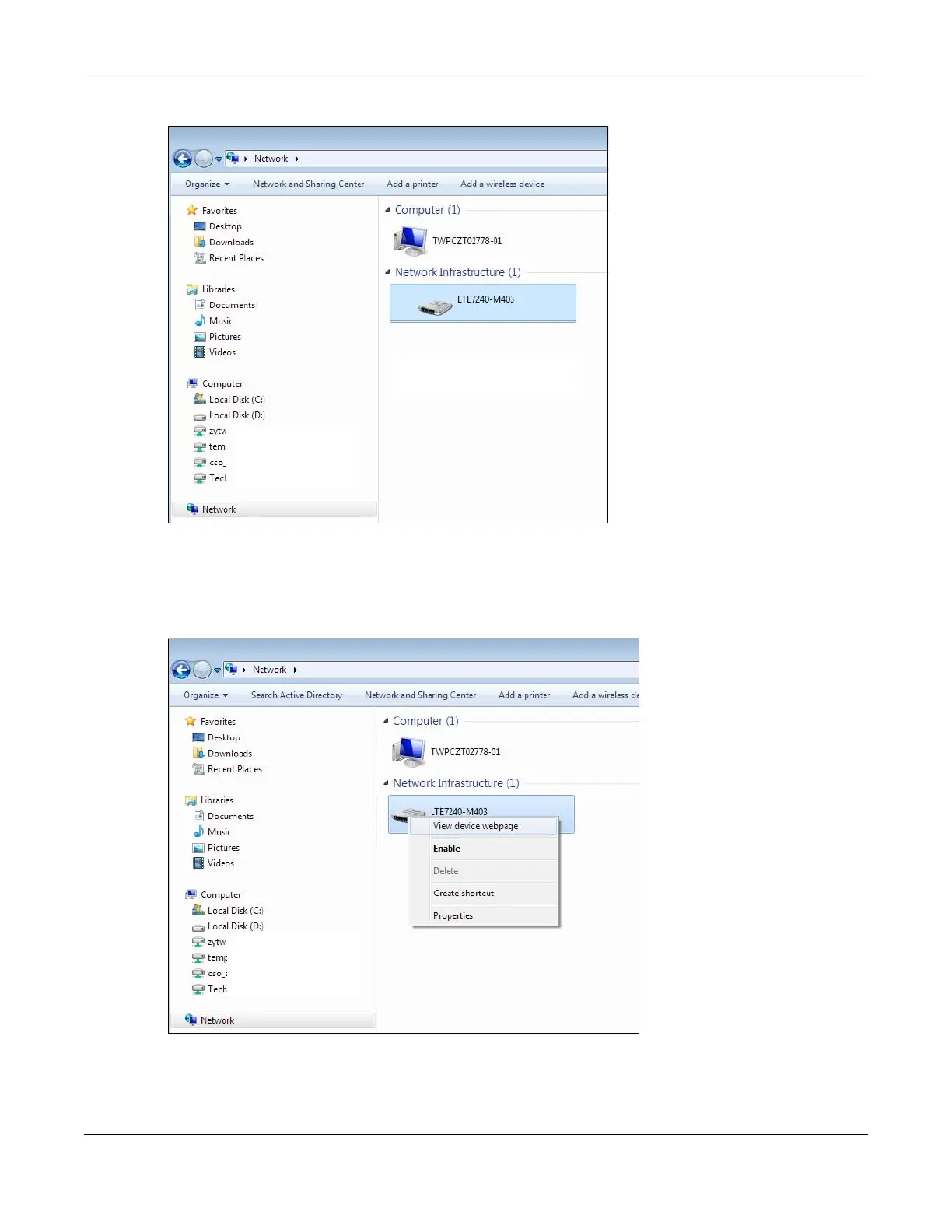 3 An icon with the description for each UPnP-enabled device displays under Network Infrastructure.