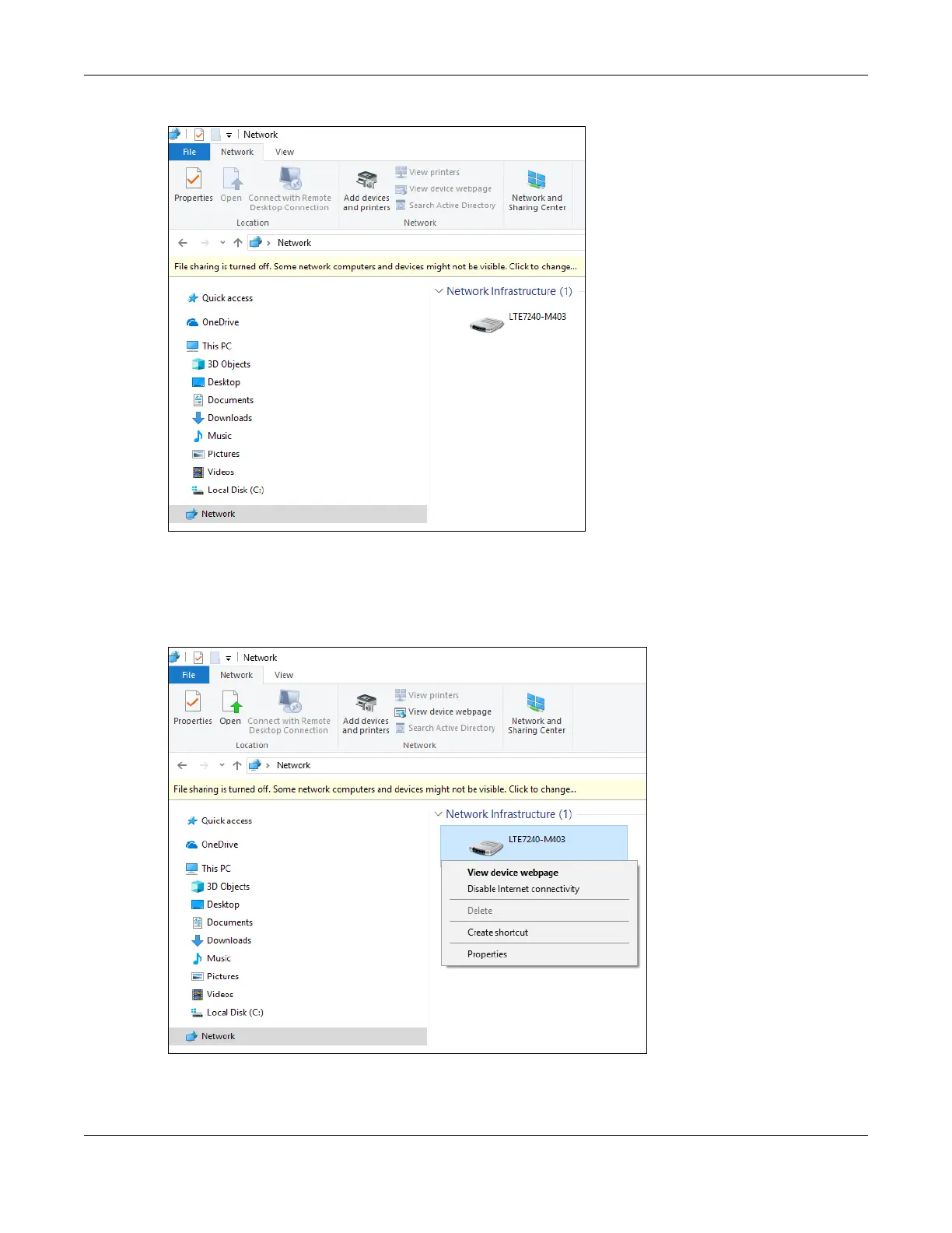3 An icon with the description for each UPnP-enabled device displays under Network Infrastructure.