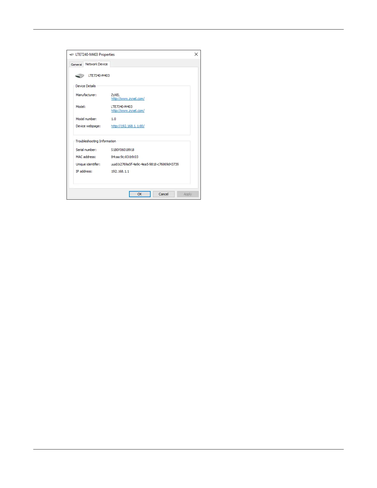 Figure 112 Network Connections: Network Infrastructure: Properties: Example