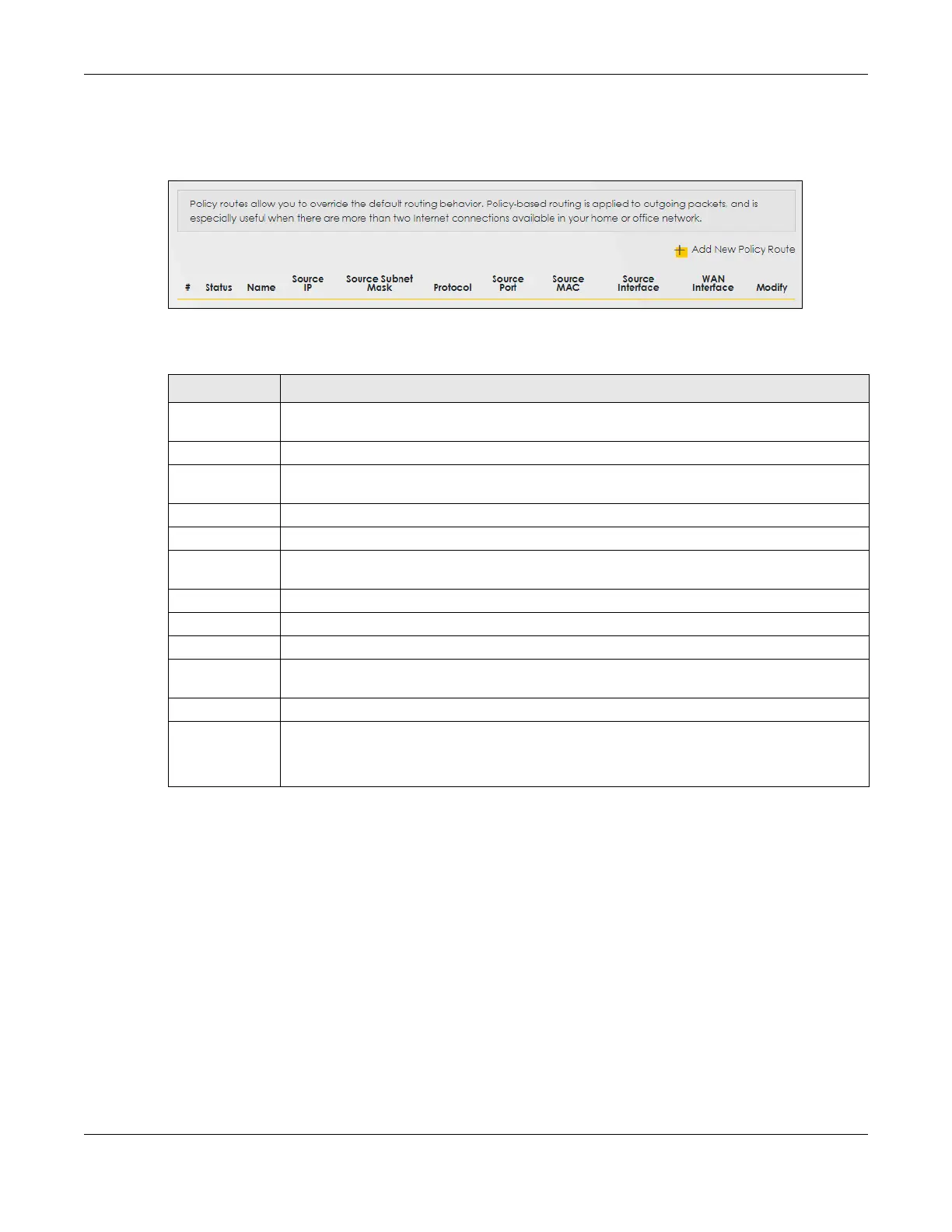 Table 49 Network Setting > Routing > Policy Route