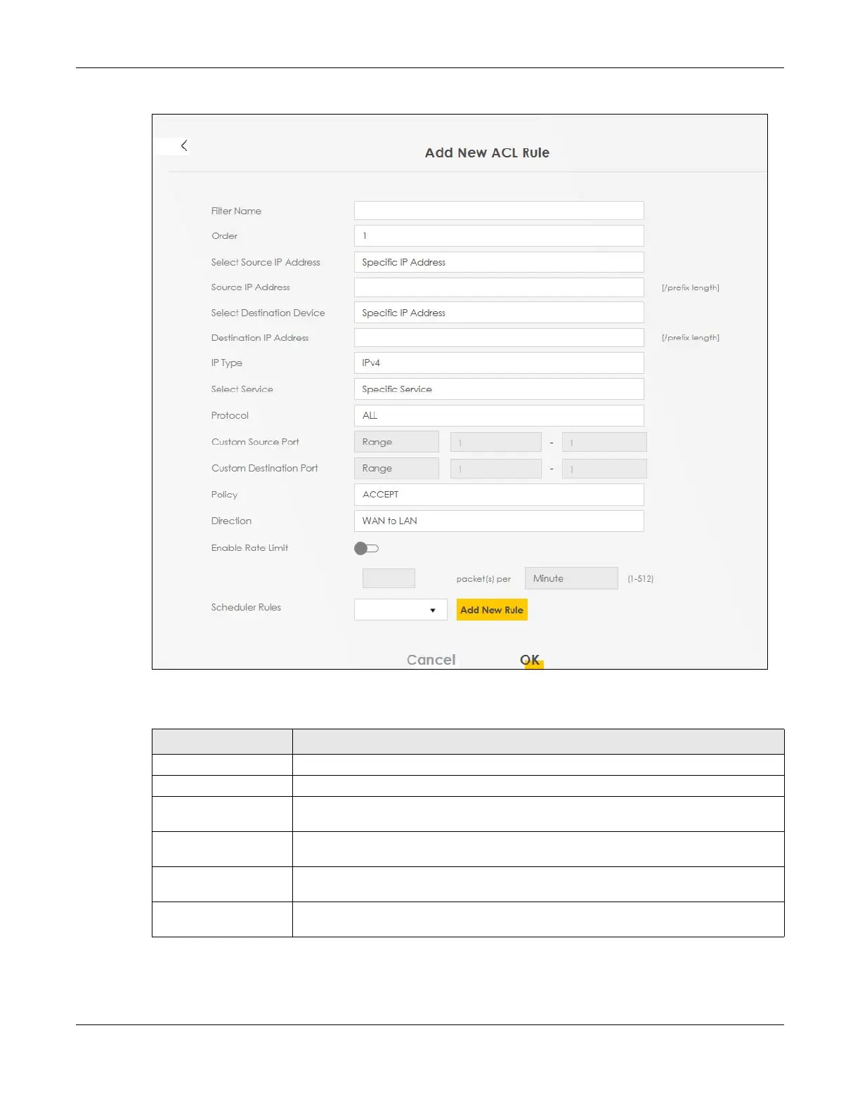 Table 70 Security > Firewall > Access Control > Add New ACL Rule