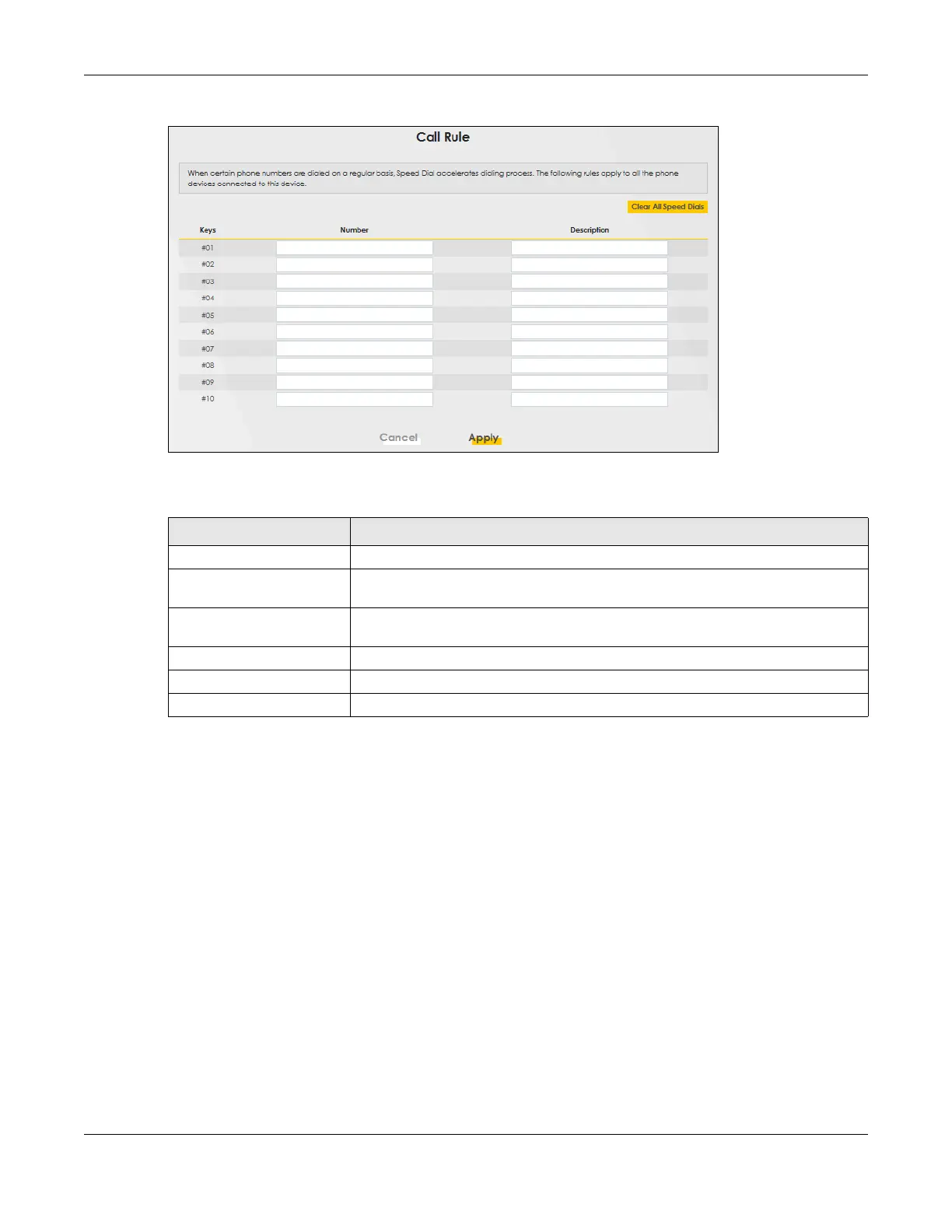 Number Enter the SIP number you want the Zyxel Device to call when you dial the speed-dial