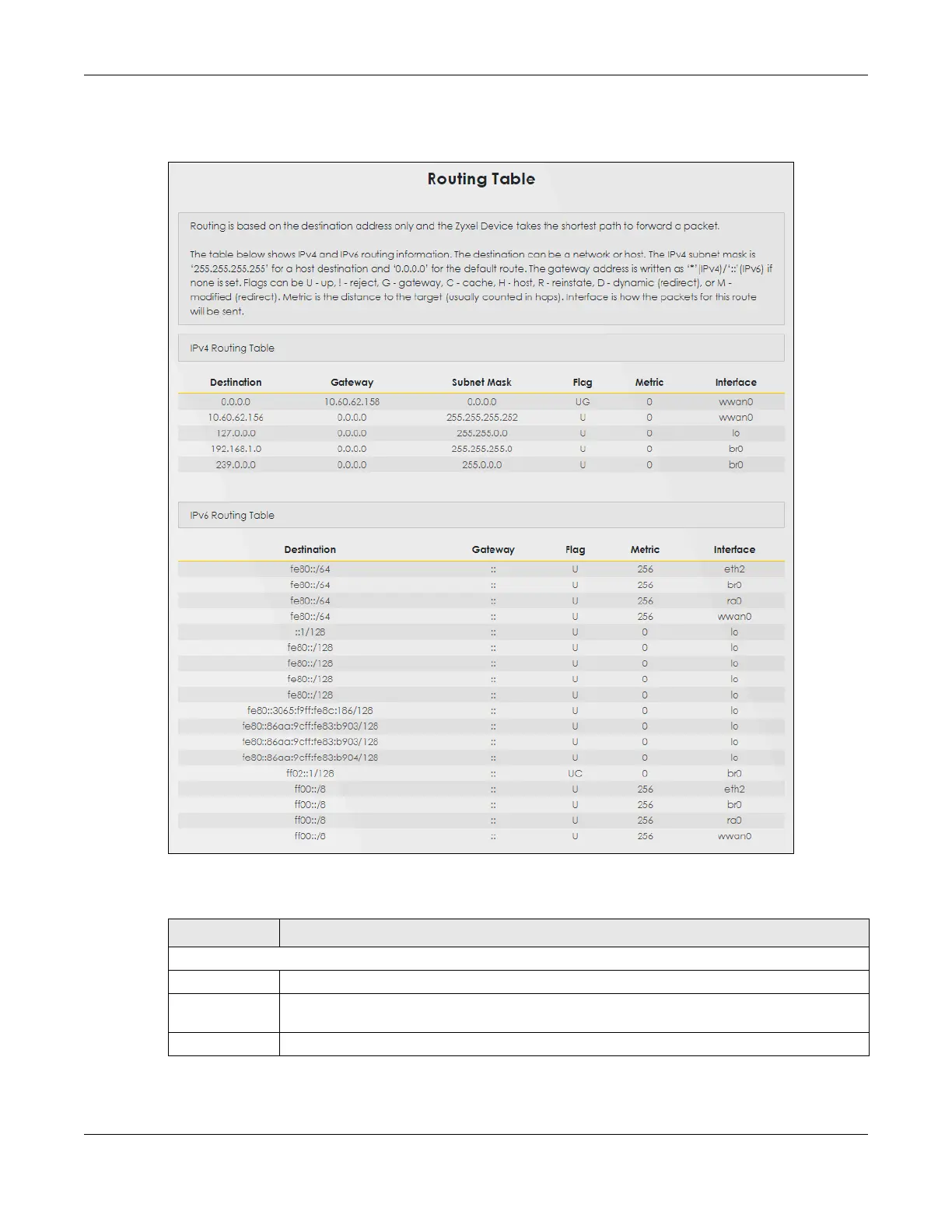 Subnet Mask This indicates the destination subnet mask of the IPv4 route.