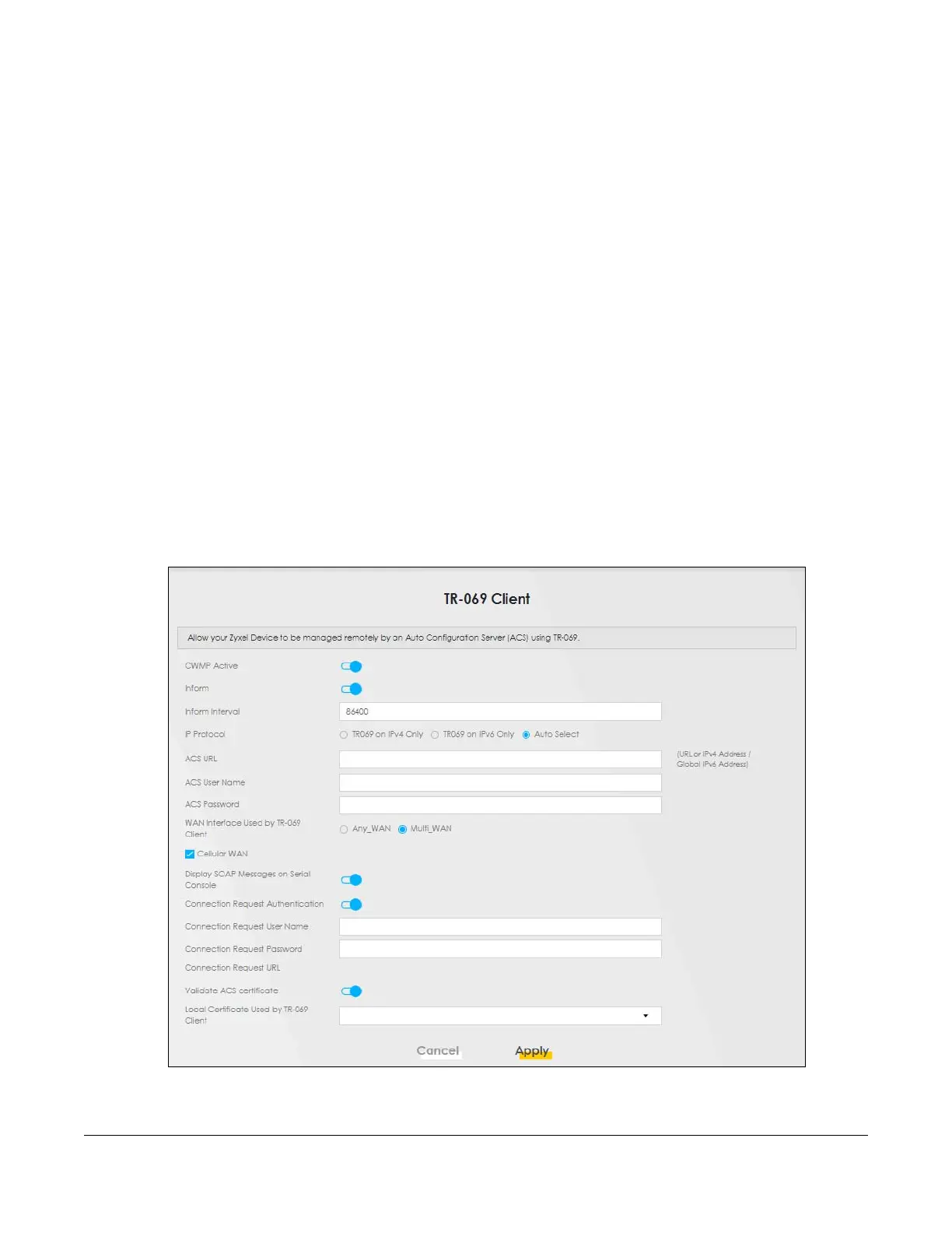 This chapter explains how to configure the Zyxel Device’s TR-069 auto-configuration settings.