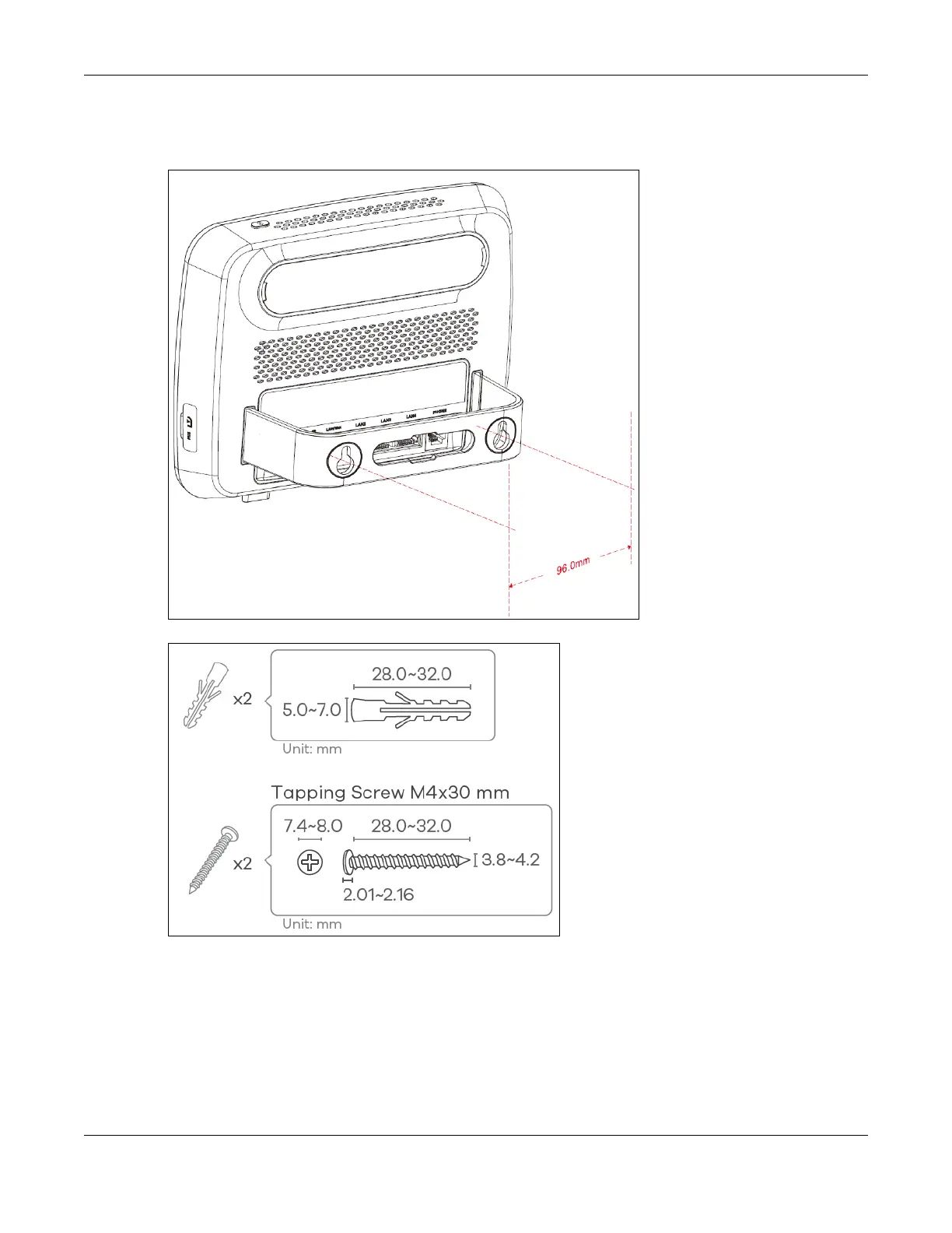 5 Align the holes on the back of the Zyxel Device with the screws on the wall. Hang the Zyxel Device on
