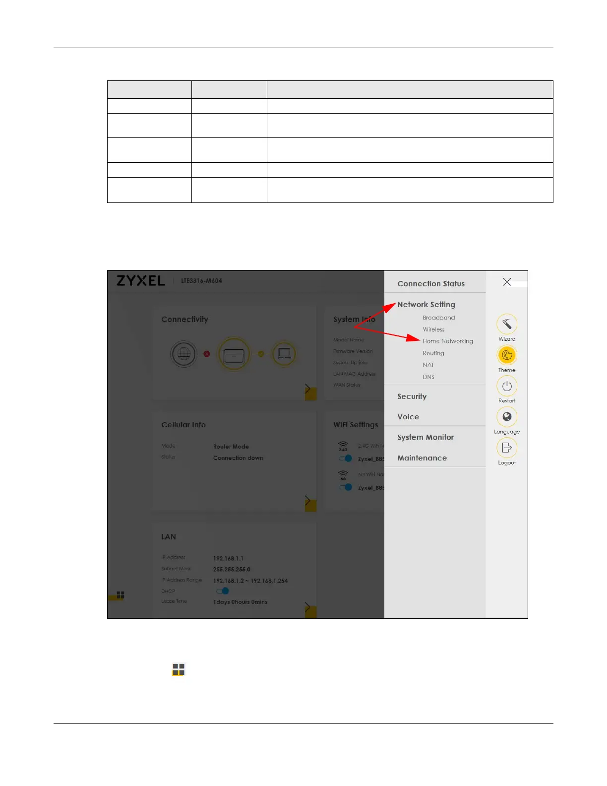 Use the menu items in the navigation panel on the right to open screens to configure the Zyxel Device’s