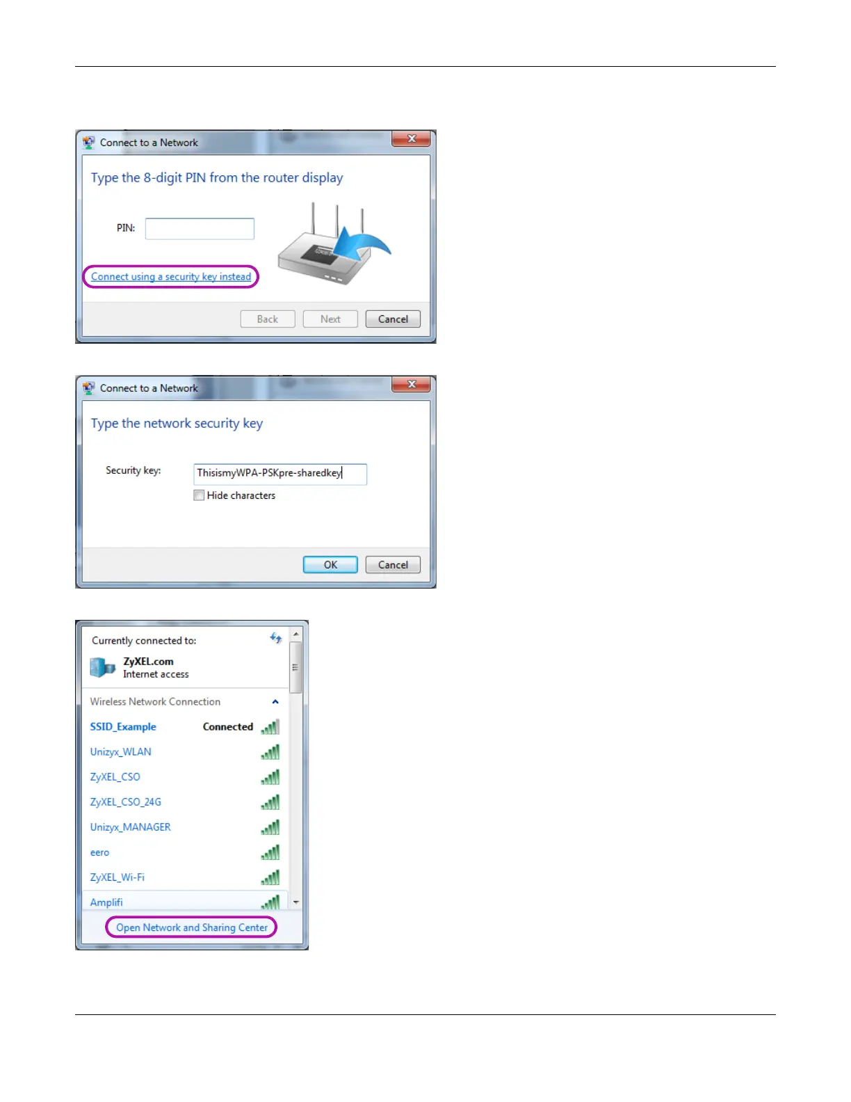 5 The following screen displays if WPS is enabled on the Zyxel Device but you didn’t press the WPS button.