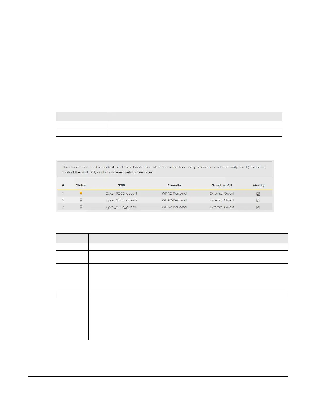 Use this screen to create Guest and additional wireless networks with different security settings.