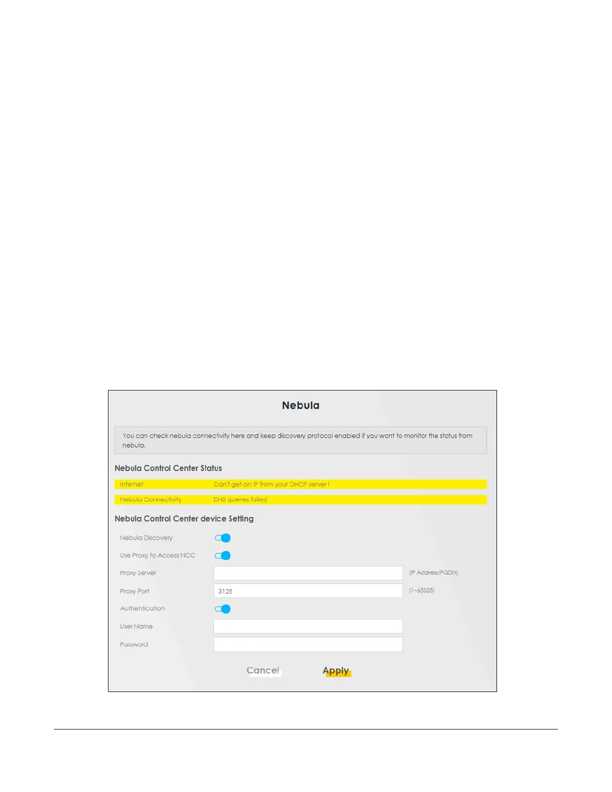 • Enable Nebula Discovery to have the Zyxel Device to try to connect to the NCC.