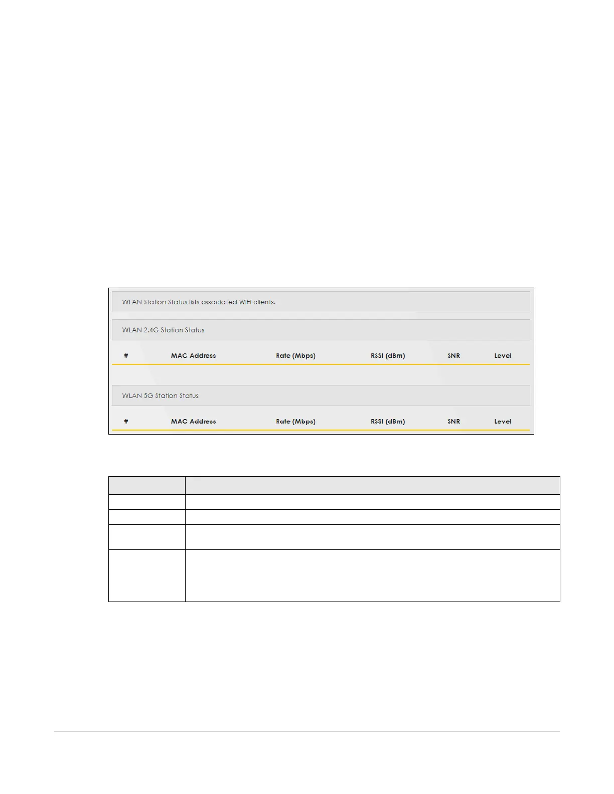 Rate (Mbps) This field displays the transmission rate of WiFi traffic between an associated wireless station and