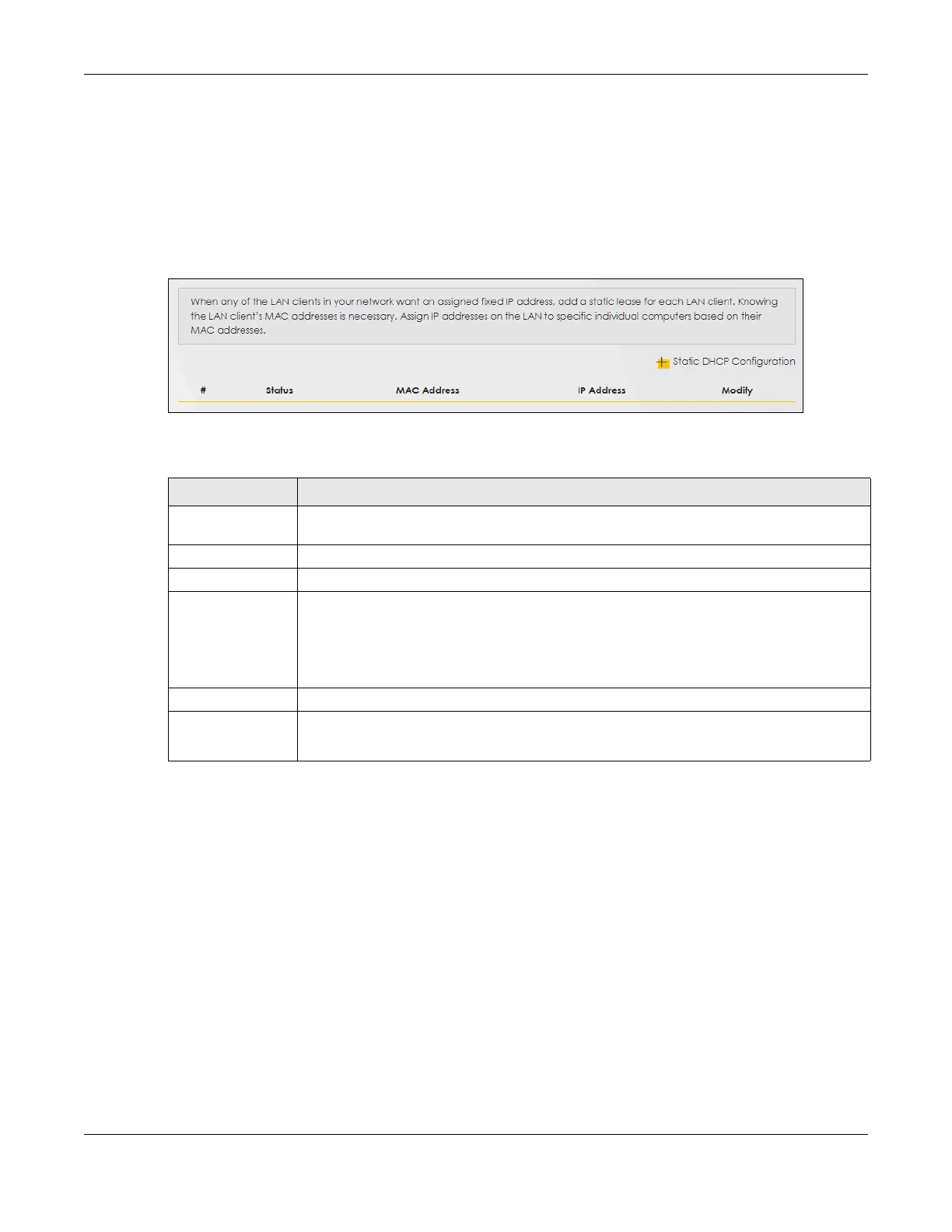 Use this screen to change your Zyxel Device’s static DHCP settings. Click Network Setting > Home