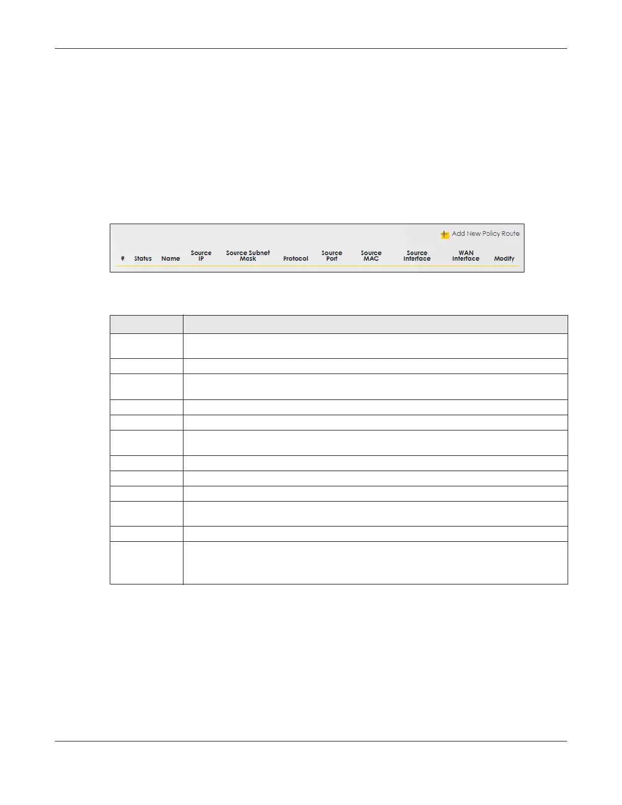 Click Add New Policy Route in the Policy Route screen or click the Edit icon next to a policy. Use this