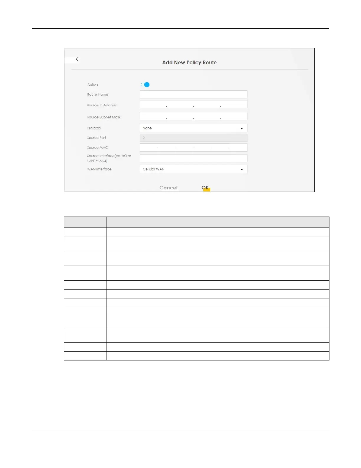 Active Click this switch to activate this policy route. Otherwise, click to disable.