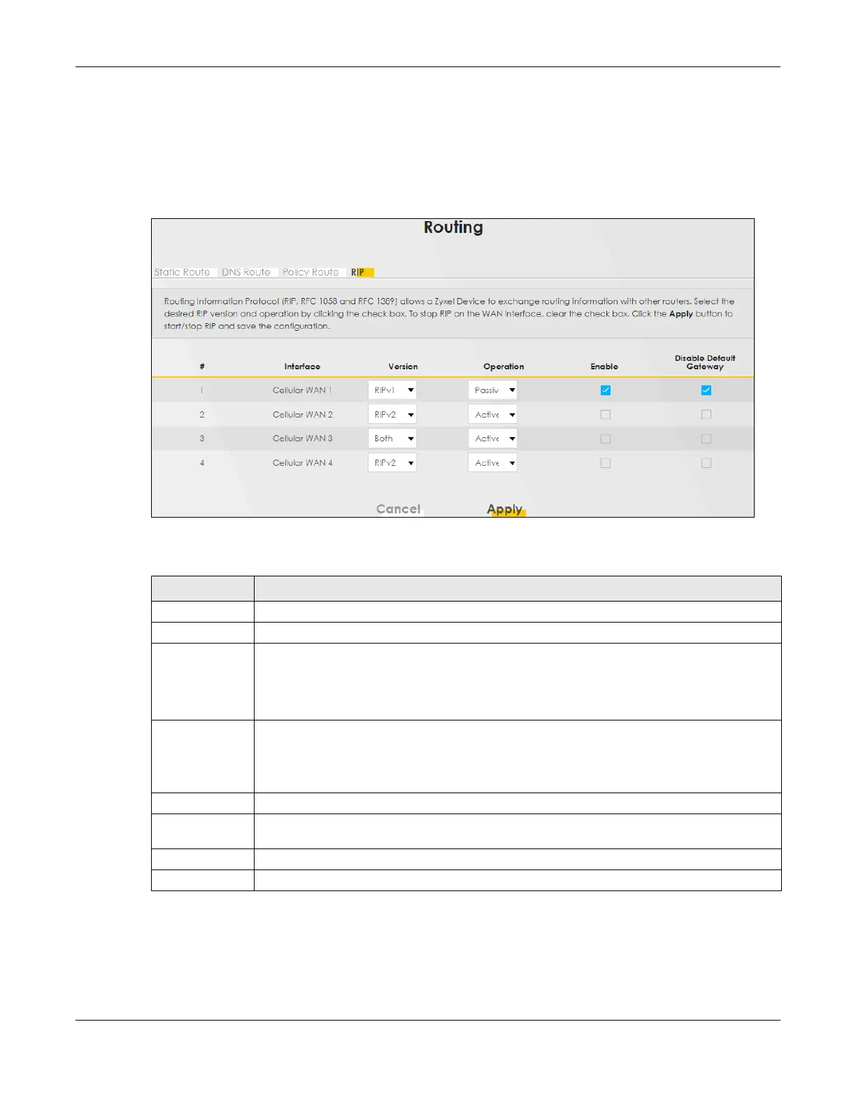 Operation Select Passive to have the Zyxel Device update the routing table based on the RIP packets